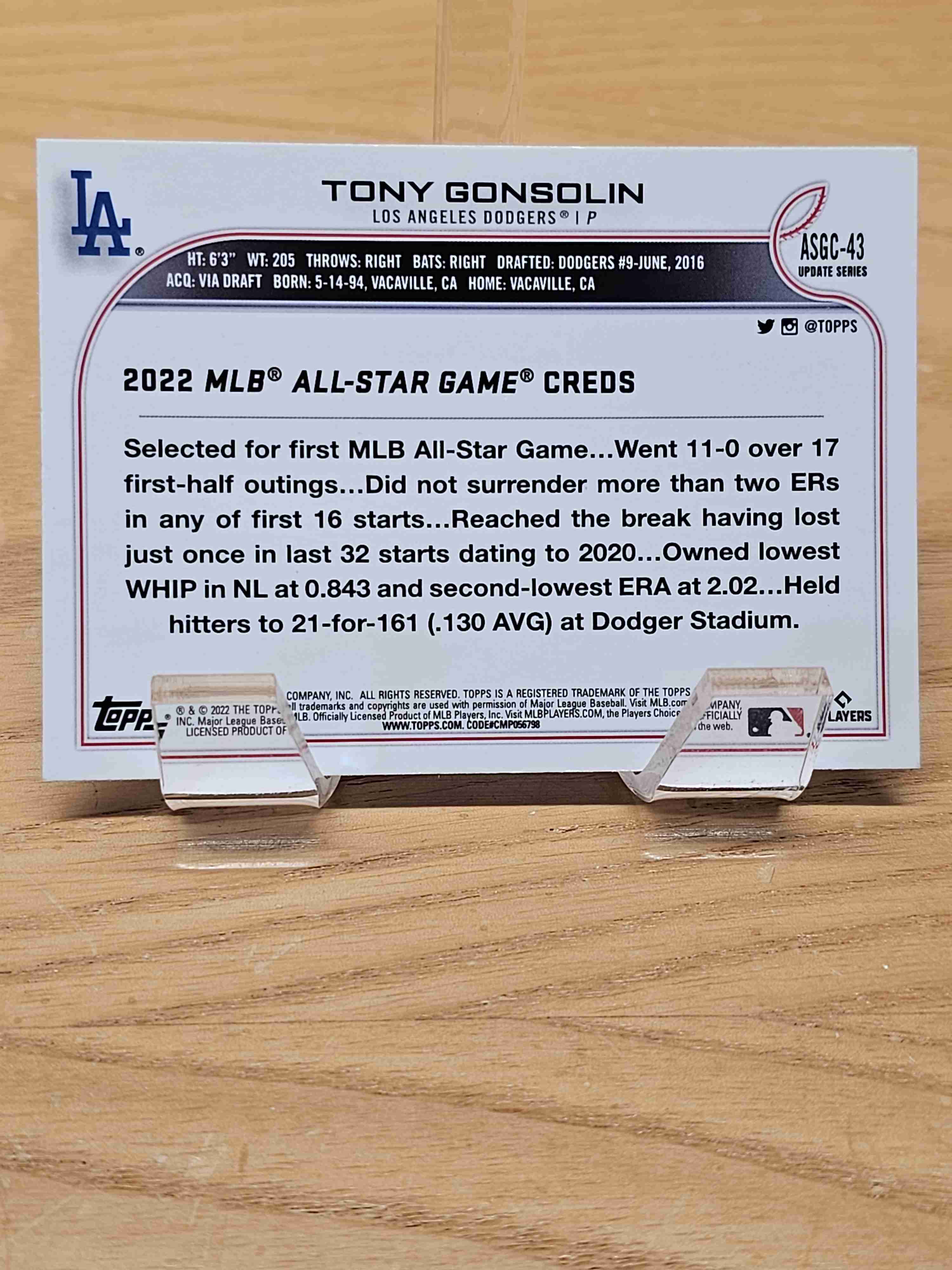 2022 Chrome Update All Star Game Tony Gonsolin #ASG-43 Dodg