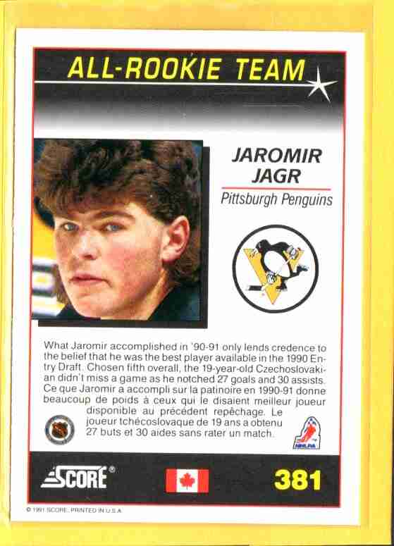 Jaromir Jagr #381 1991 Score Canadian