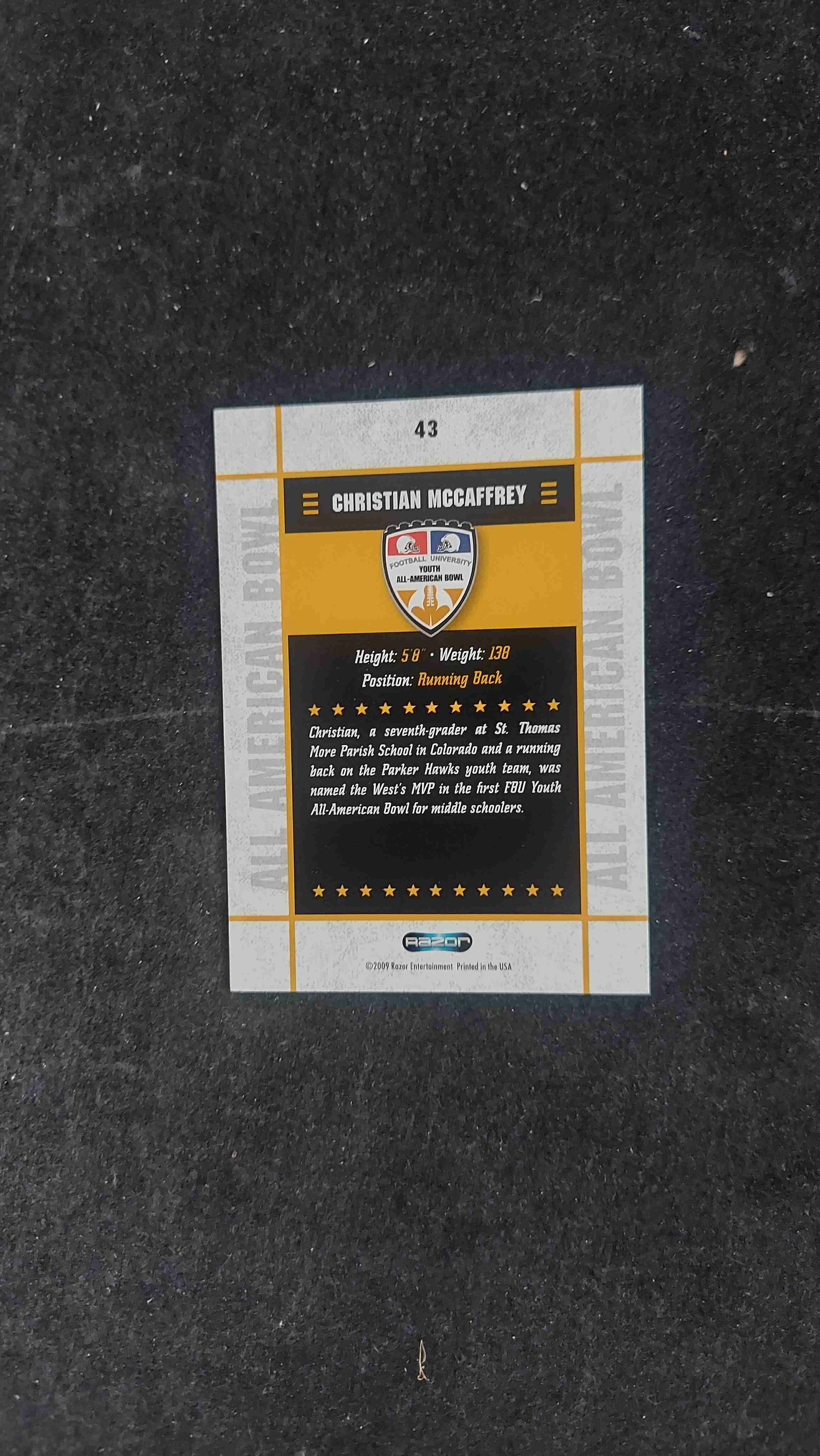 Christian McCaffrey 2009 razor all American bowl card middl
