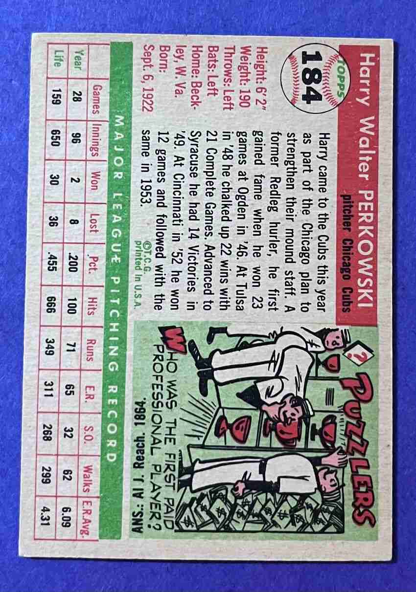 55 Topps HARRY PERKOWSKI Hi #184 +++