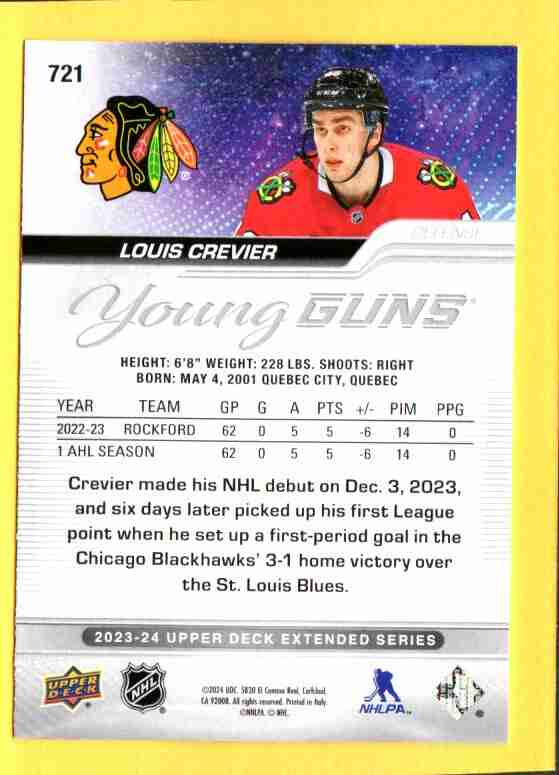 Louis Crevier #721 [Rookie] 2023 Upper Deck YG
