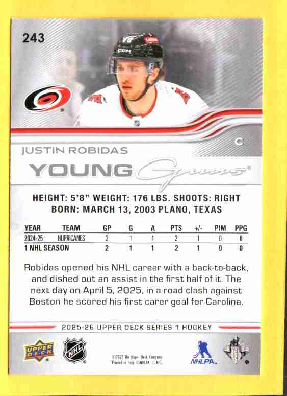 Justin Robidas #243 [Rookie] 2025 Upper Deck YG