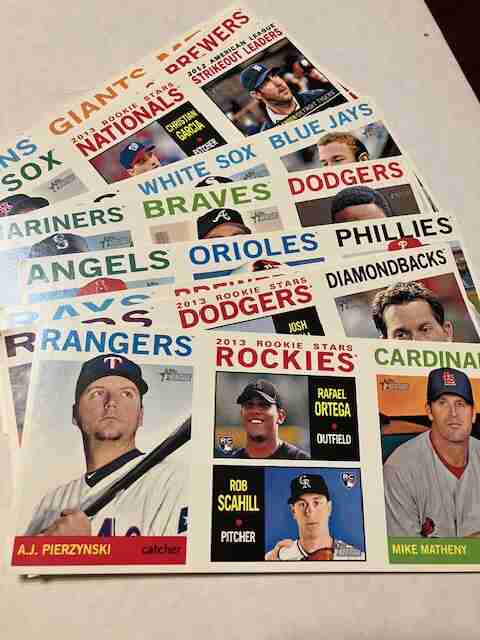 2013 TOPPS HERITAGE BOX TOPPER PANEL CARDS - 13 (INCLUDES ONE DUPLICATE).