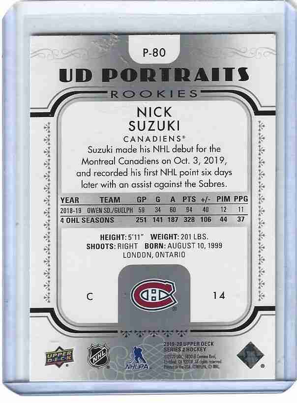 2019/20 UD 2 NICK SUZUKI ROOKIE PORTRAITS P-80