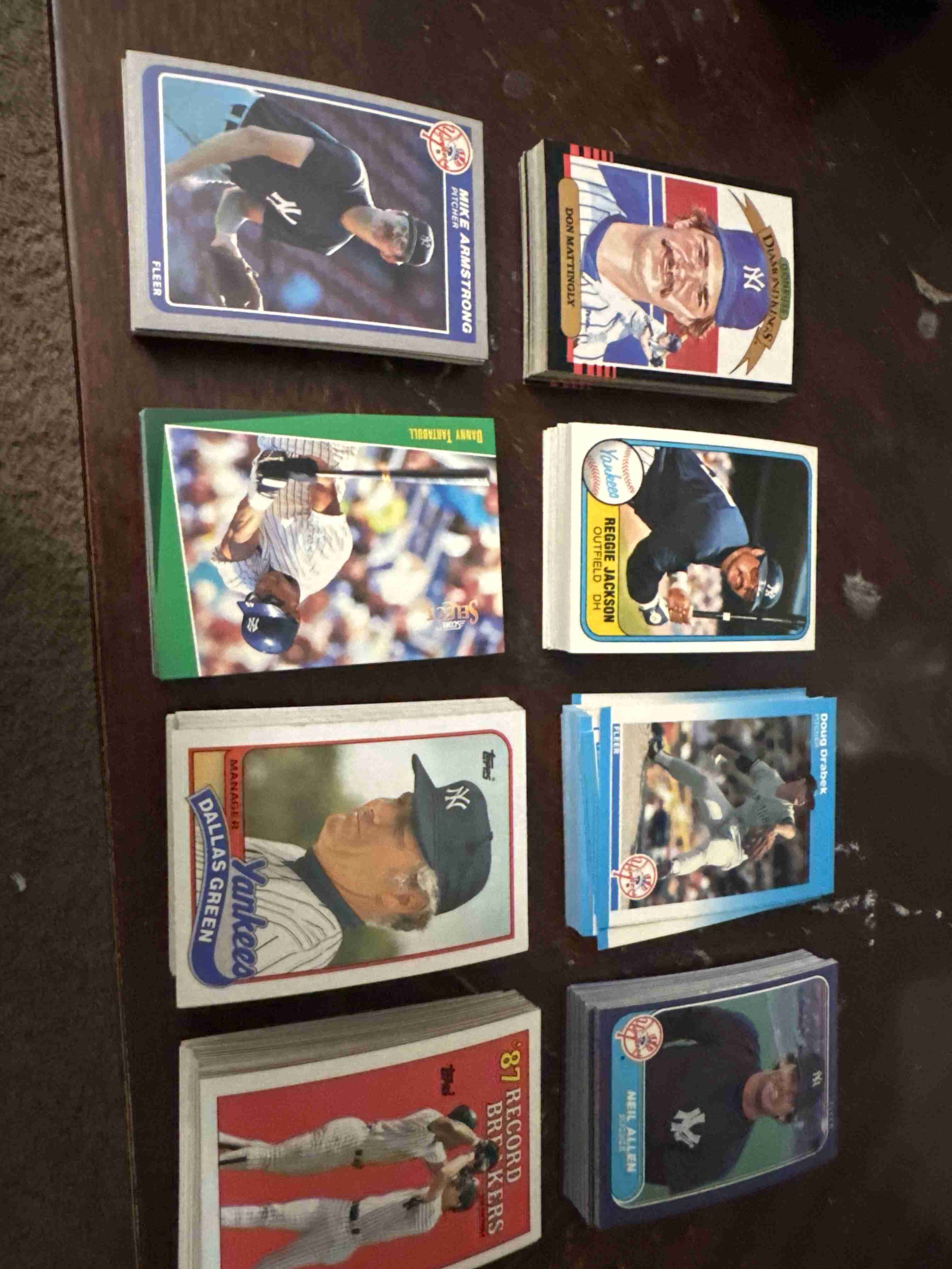 1985 fleer-mattingly 2nd year 1981 fleer 1987 fleer 1986 fleer plus traded 1985 Donruss -mattingly 2nd year 1993 score select-plus update(Jeter RC) 1989 Topps pus traded 1988 Topps plus traded