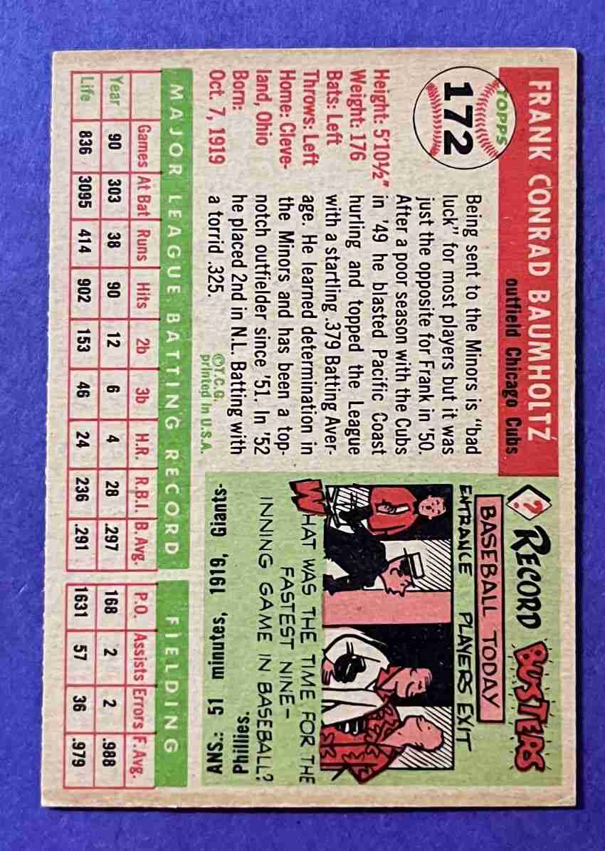 55 Topps FRANK BAUMHOLTZ Hi #172 +++