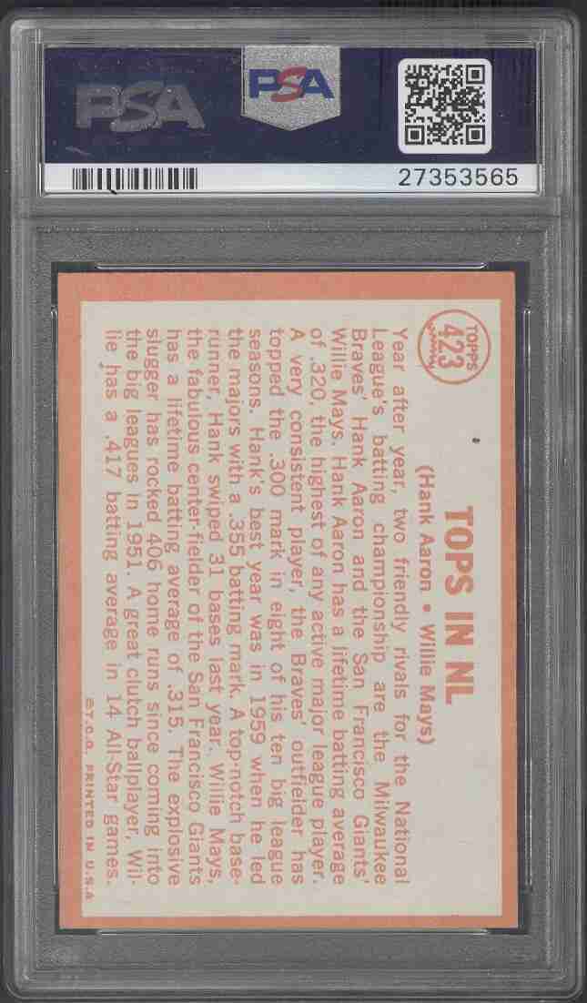 1964 TOPPS (AARON & MAYS) TOPS IN NL #423 - PSA 5
