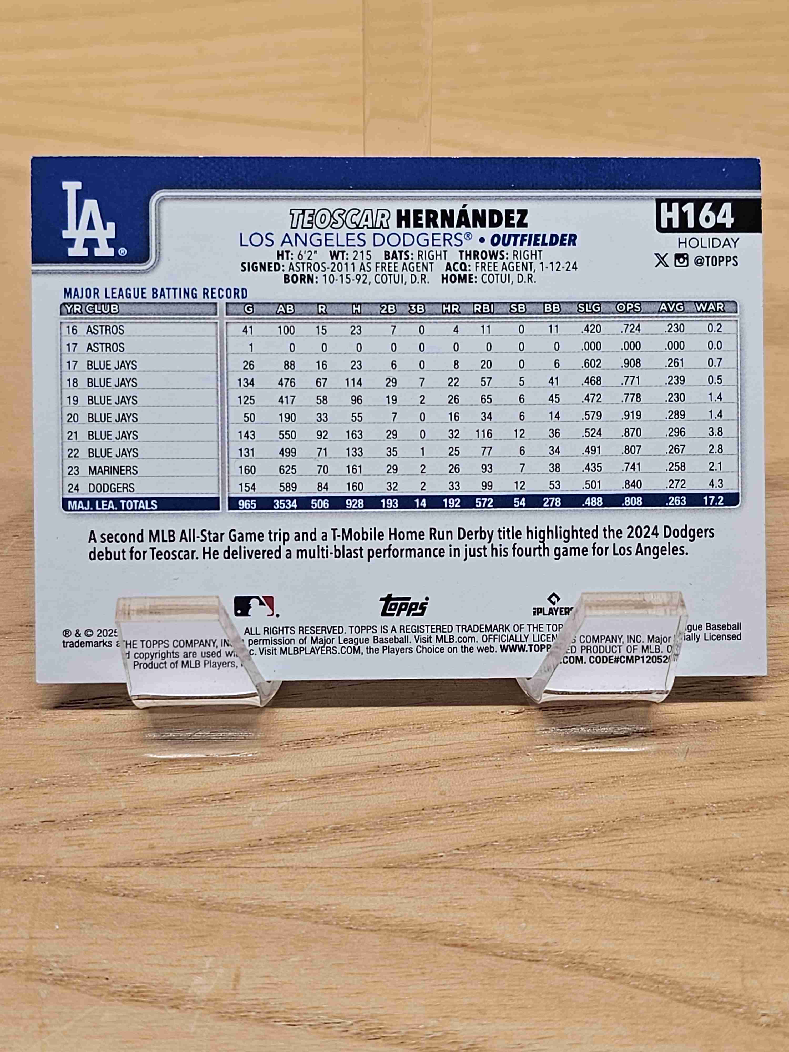2025 Topps Holiday Baseball Teoscar Hernandez Los Angeles Dodgers Card #H164