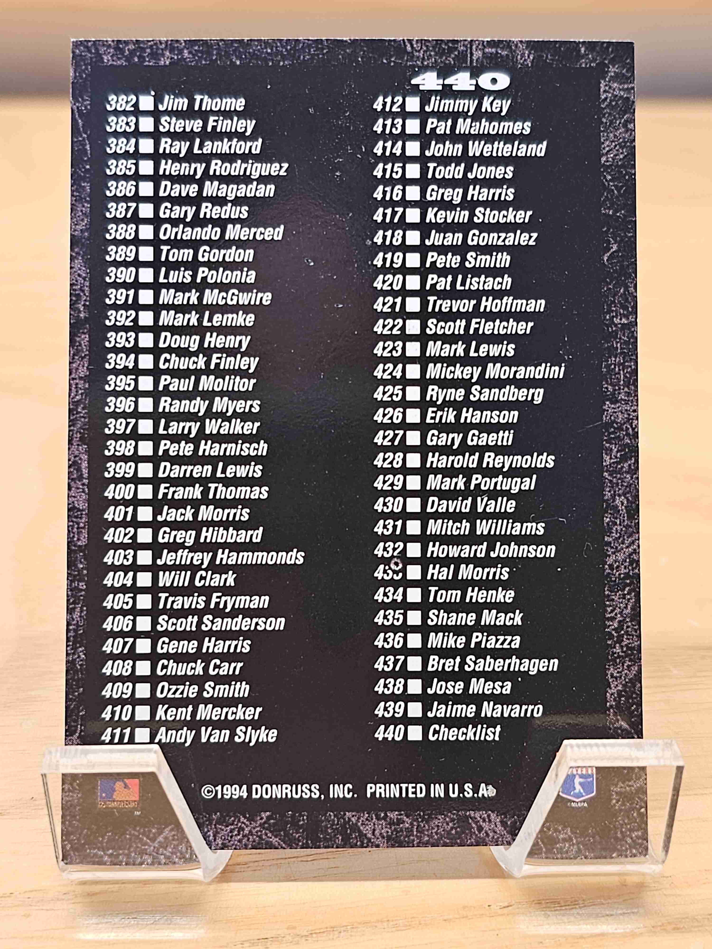 1994 Donruss Baseball Western Division Checklist Colorado Rockies San Diego Padres Los Angeles Dodgers San Francisco Giants Card #440