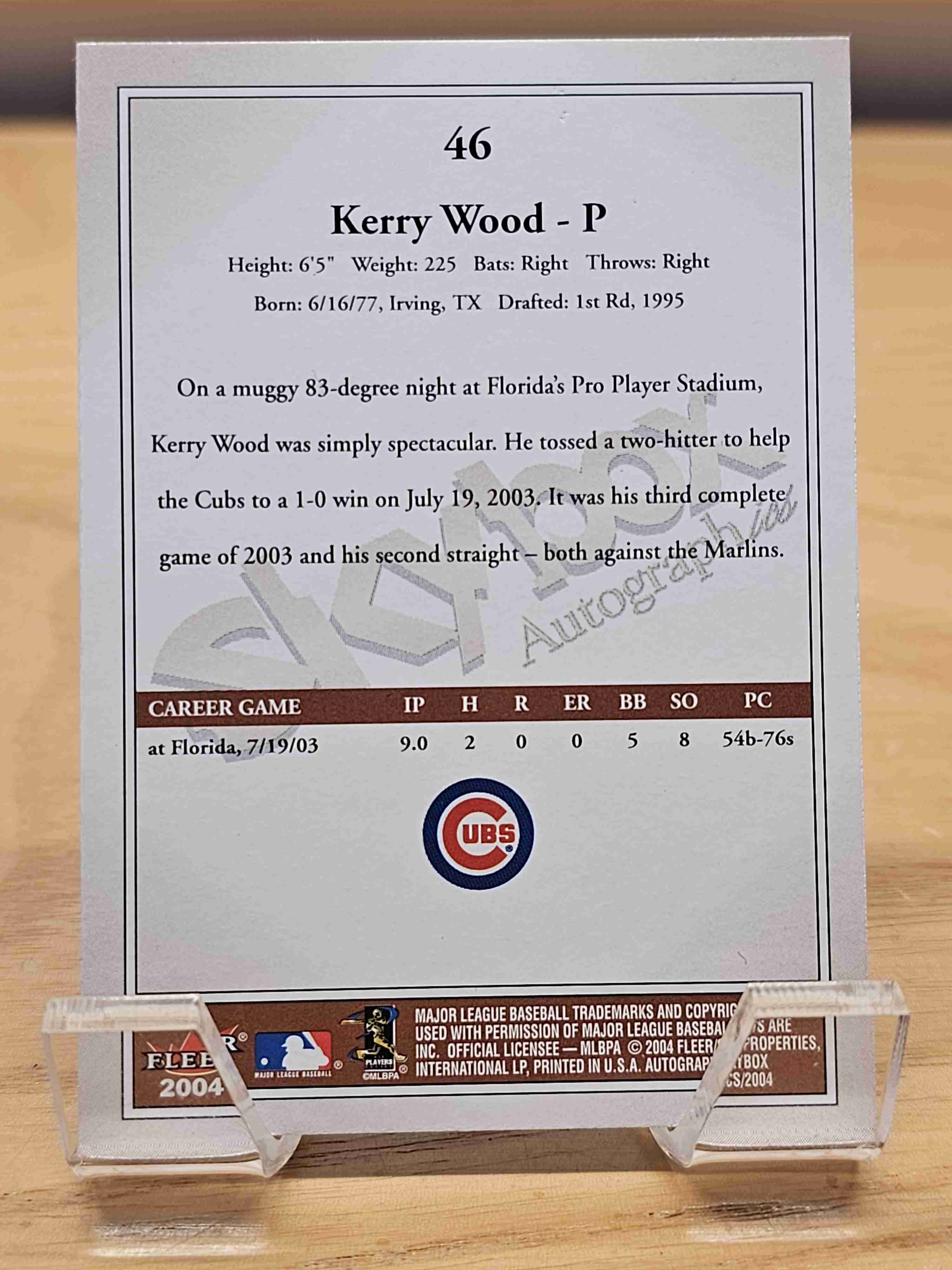 2004 Fleer Skybox Baseball Autographics Kerry Wood Chicago Cubs Card #46