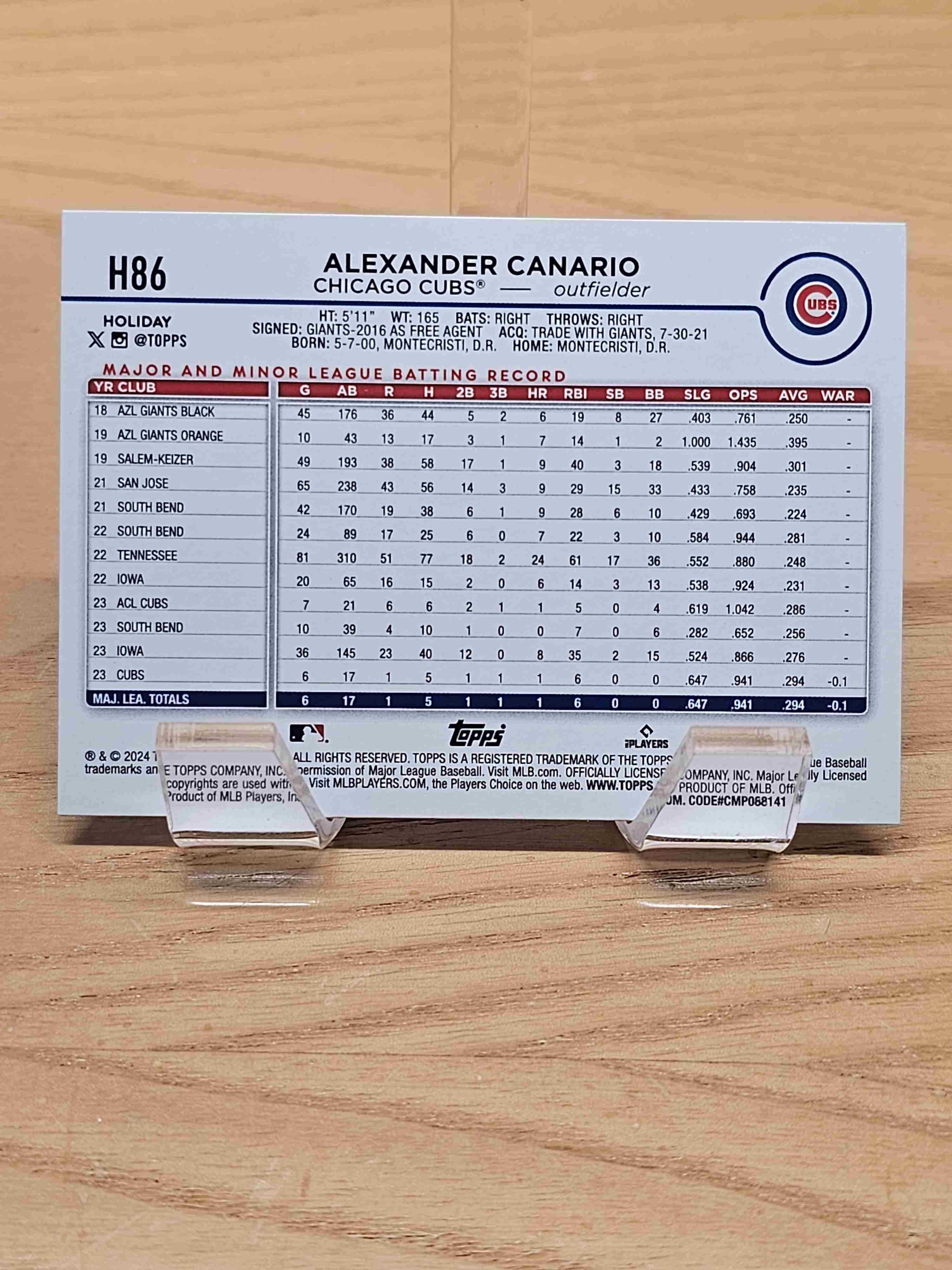 2024 Topps Holiday Rookie RC Alexander Canario Cubs #H86