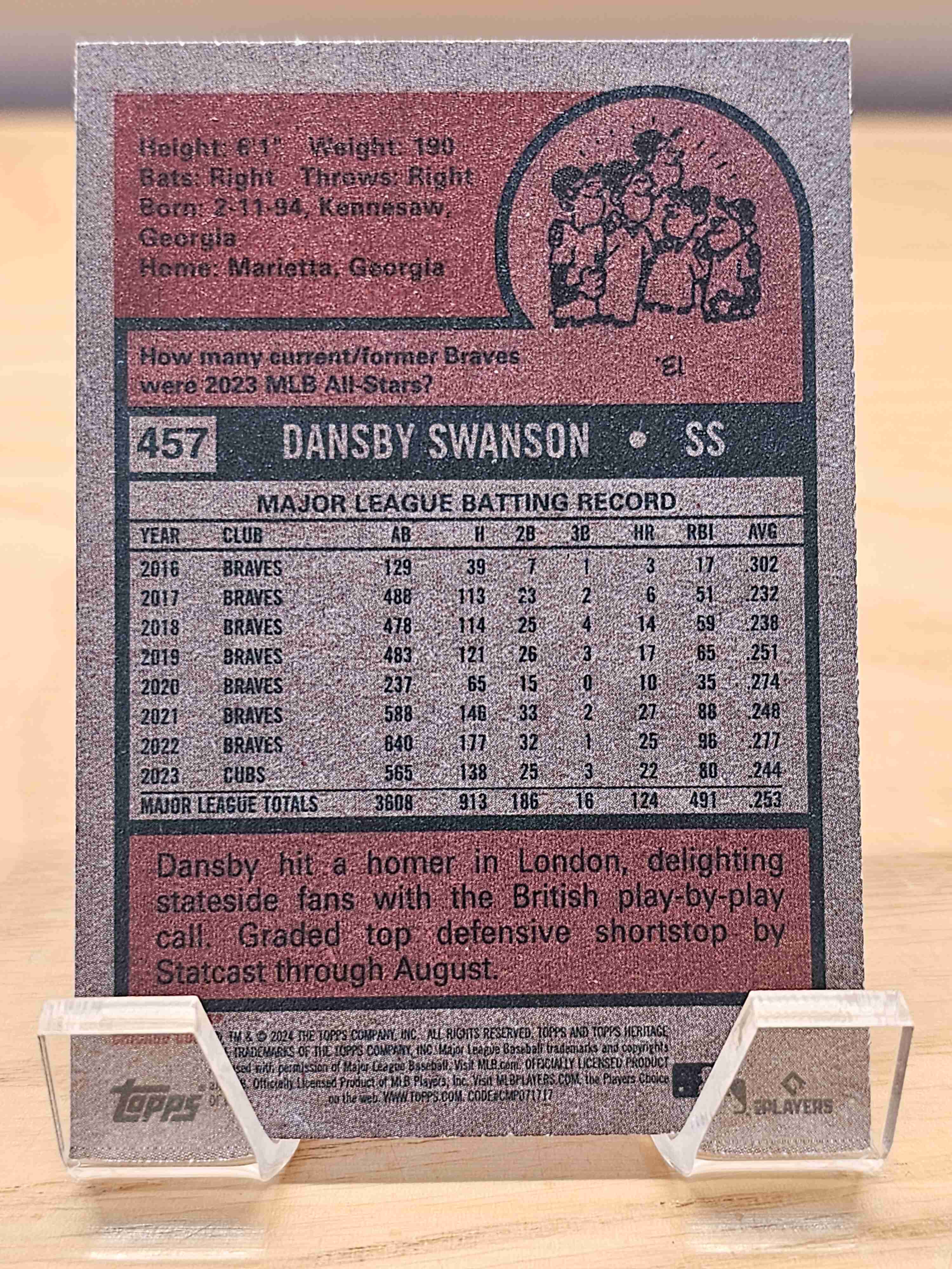 2024 Topps Heritage Baseball Dansby Swanson Chicago Cubs Card #457
