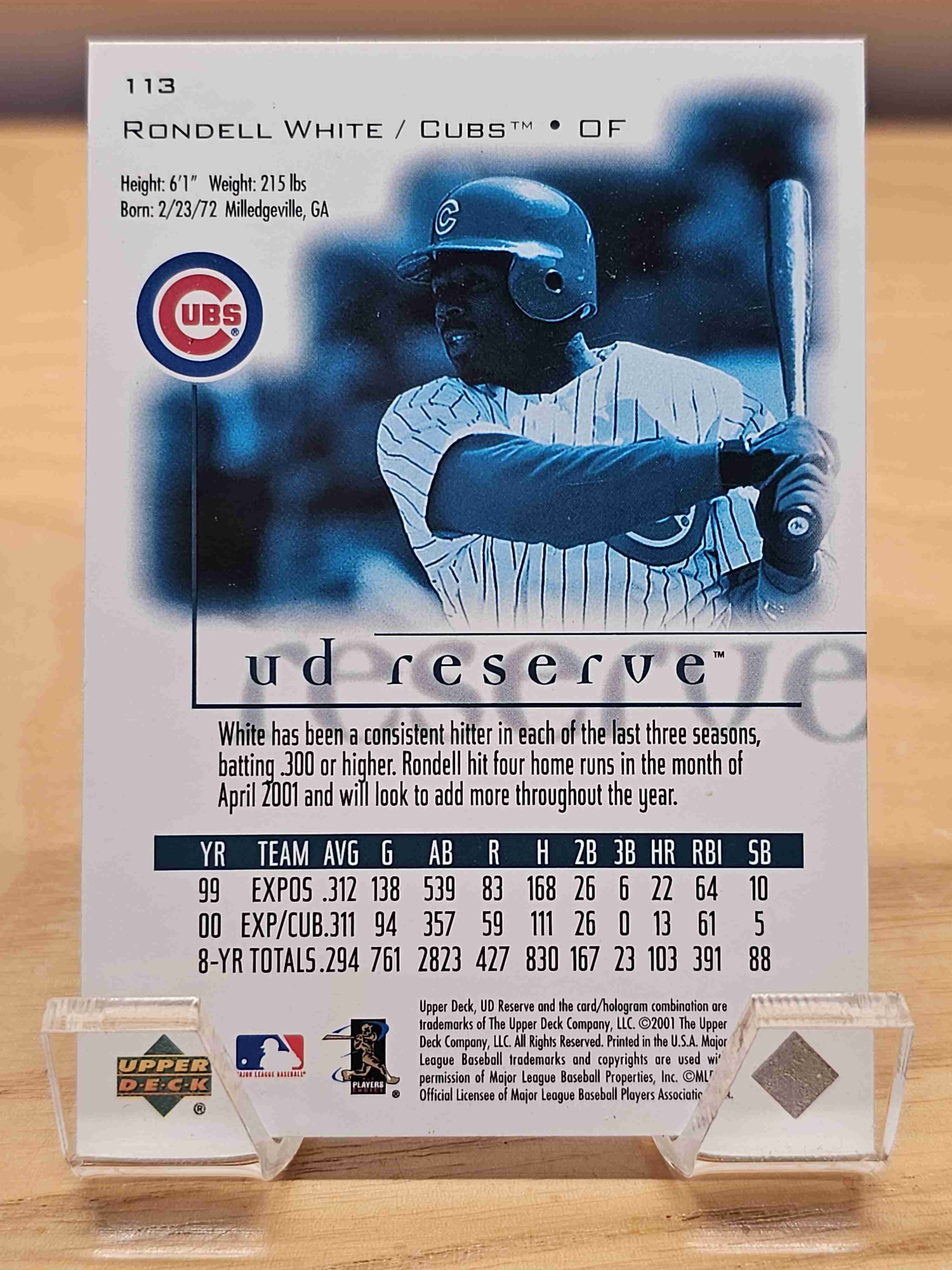 2001 Upper Deck Baseball UD Reserve Rondell White Chicago Cubs Card #113