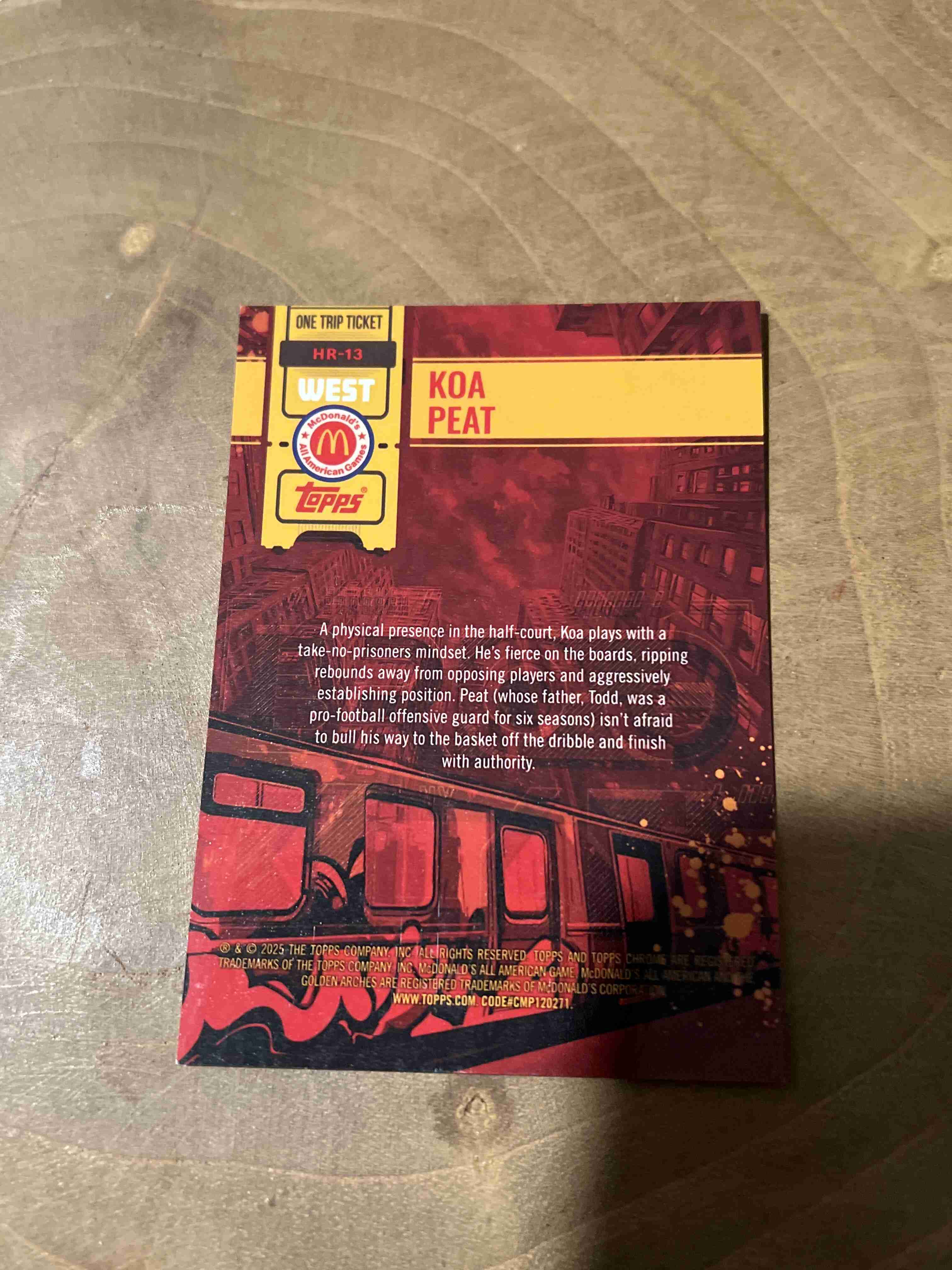 Koa Peat 2025 Topps Chrome McDonald’s One Trip Ticket Gold Refractor HR-13 18/50