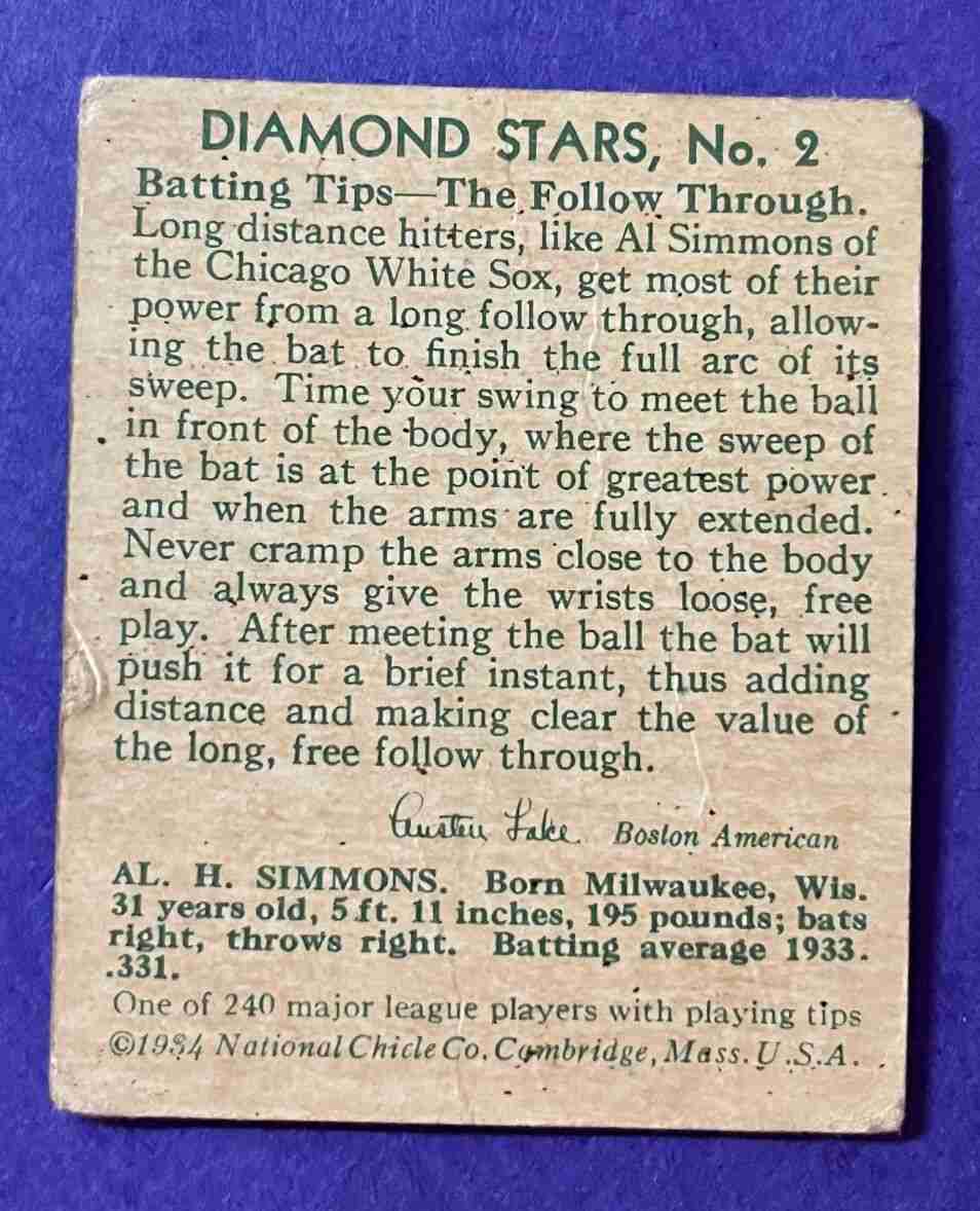 1934-36 DiamondStars AL SIMMONS #2 HOF!