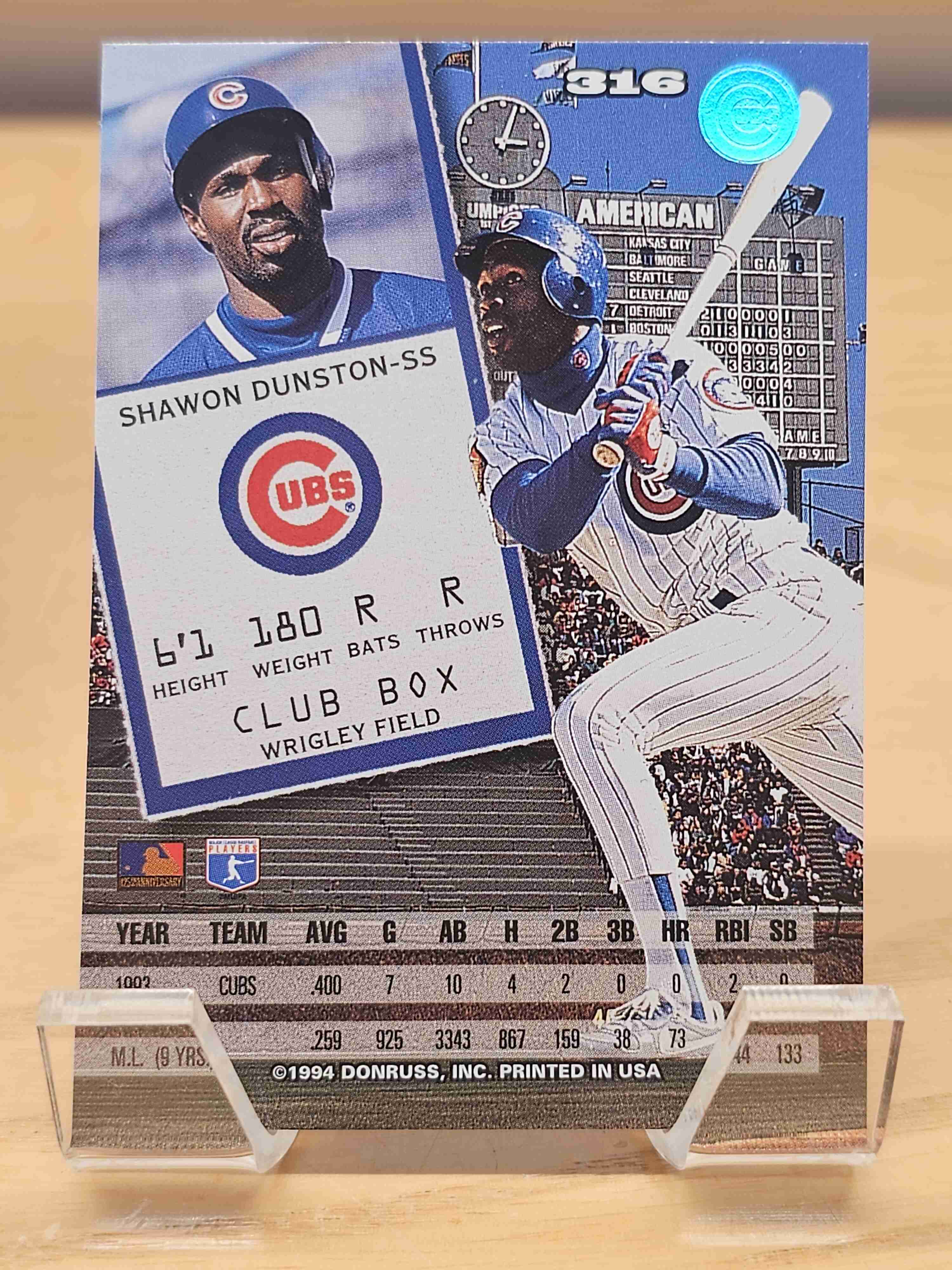 1994 Donruss Baseball Shawon Dunston Chicago Cubs Card #316