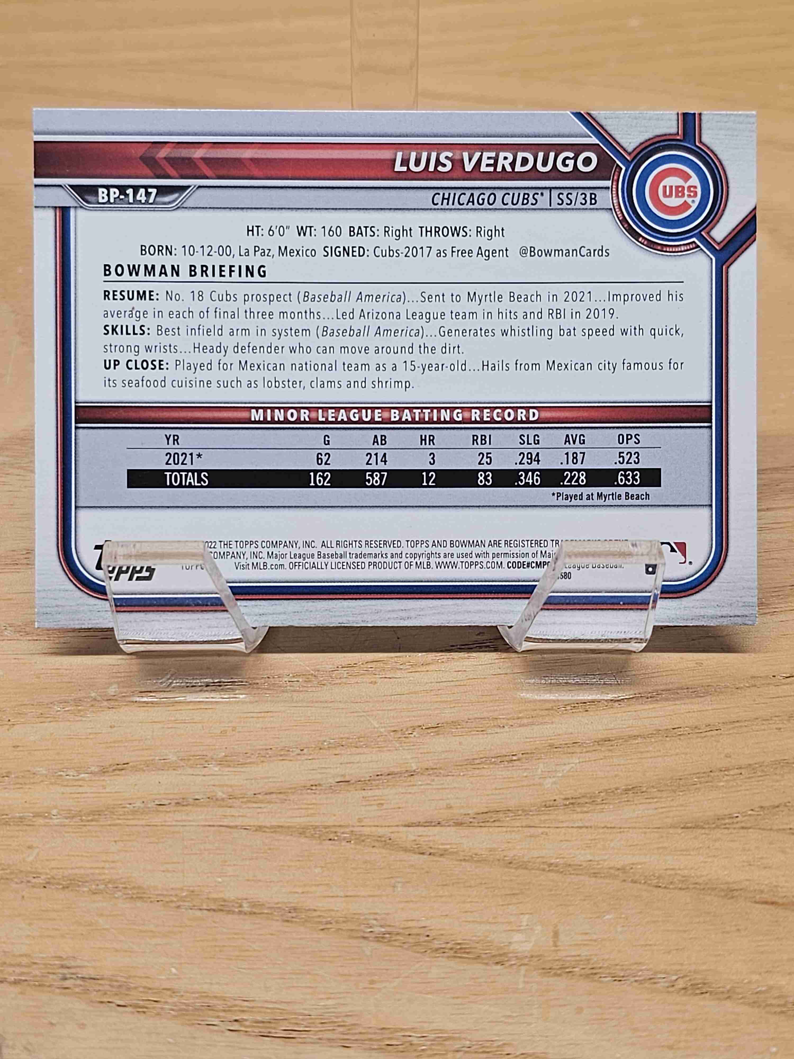 2022 Bowman 1st Prospects Luis Verdugo Cubs #BP-147