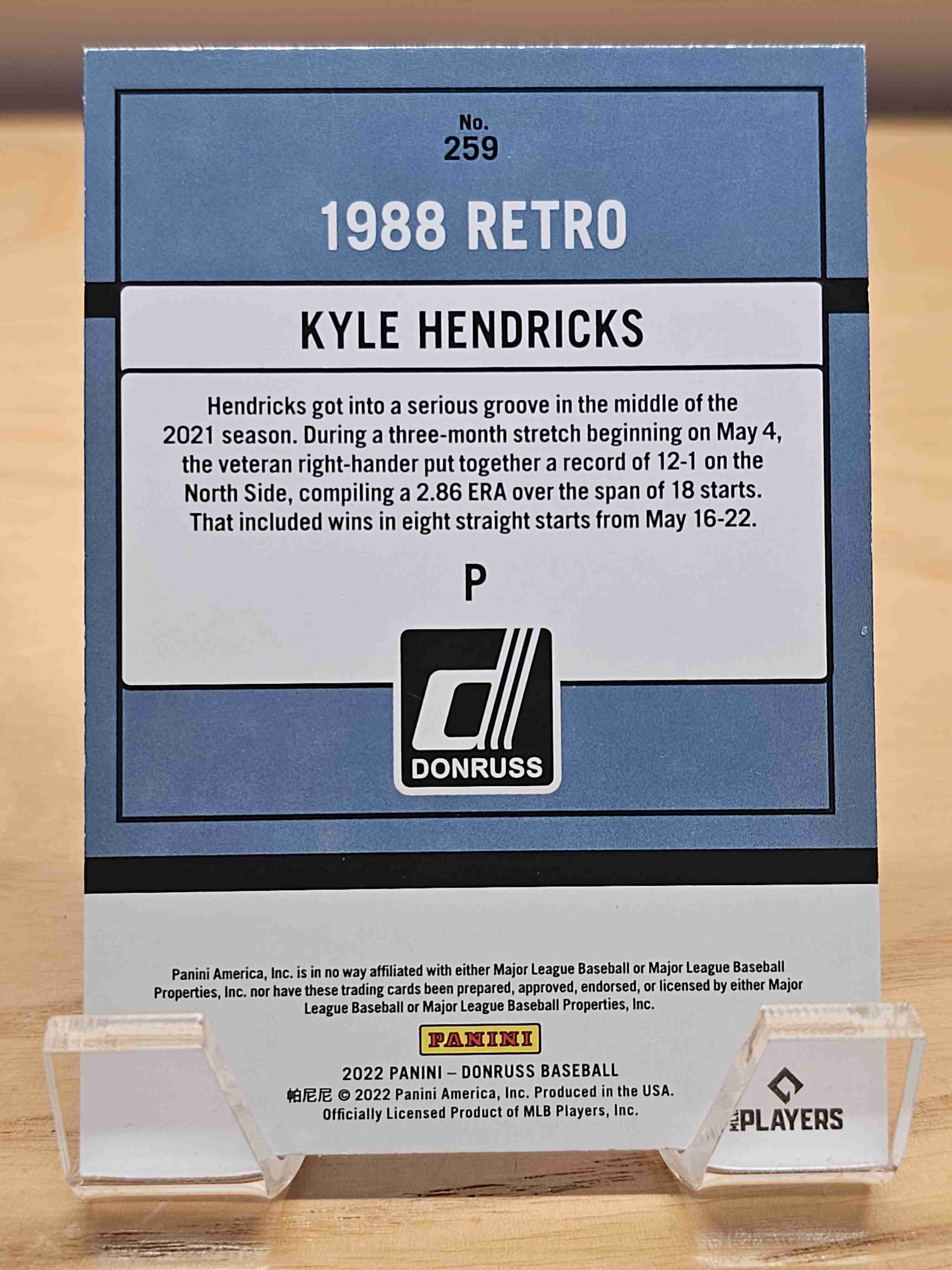 2022 Panini Donruss Baseball 1988 Retro Kyle Hendricks Chicago Cubs Card #259