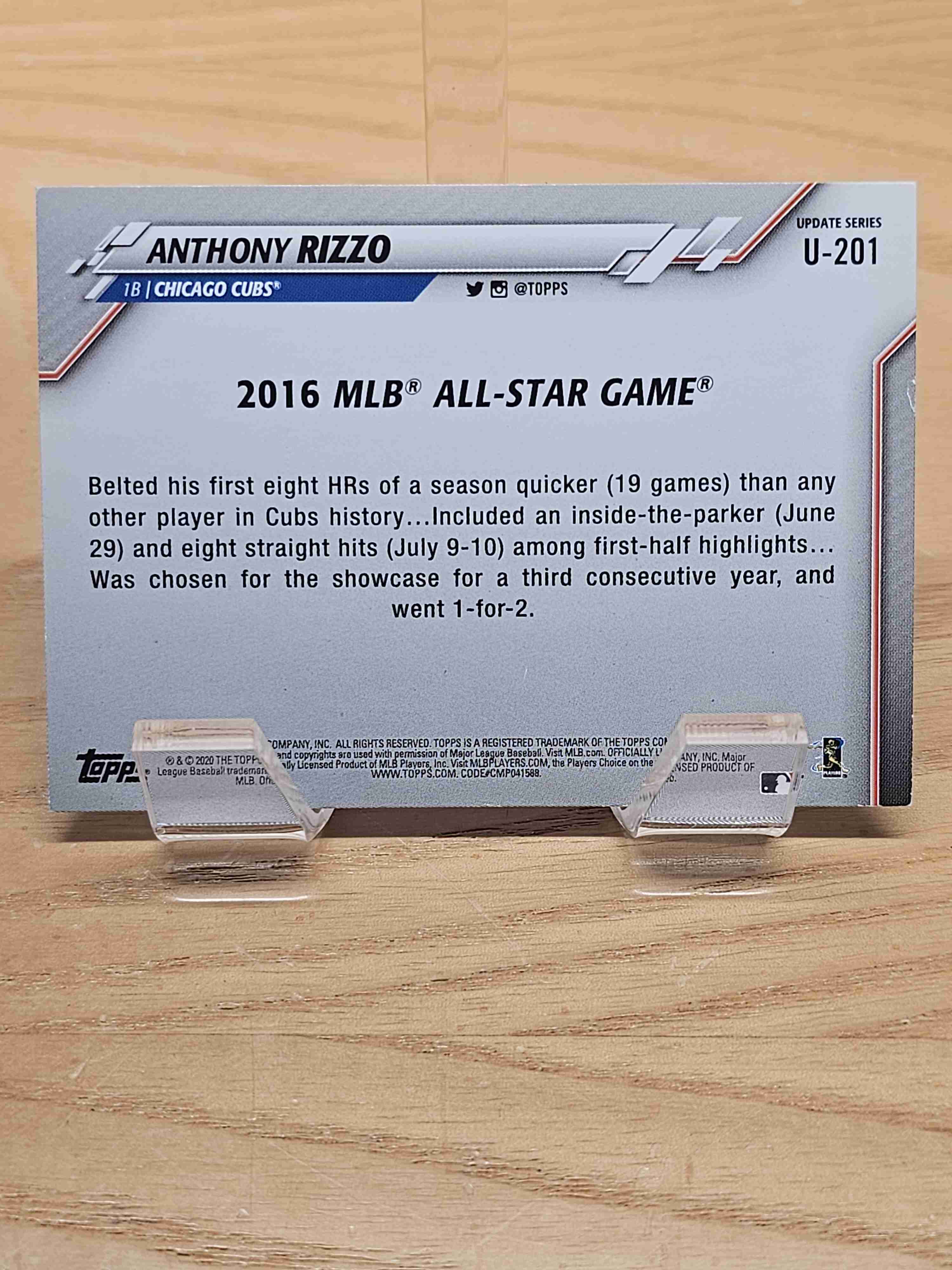2020 Topps Update Series Baseball All-Star Game Anthony Rizzo Chicago Cubs Card #U-201
