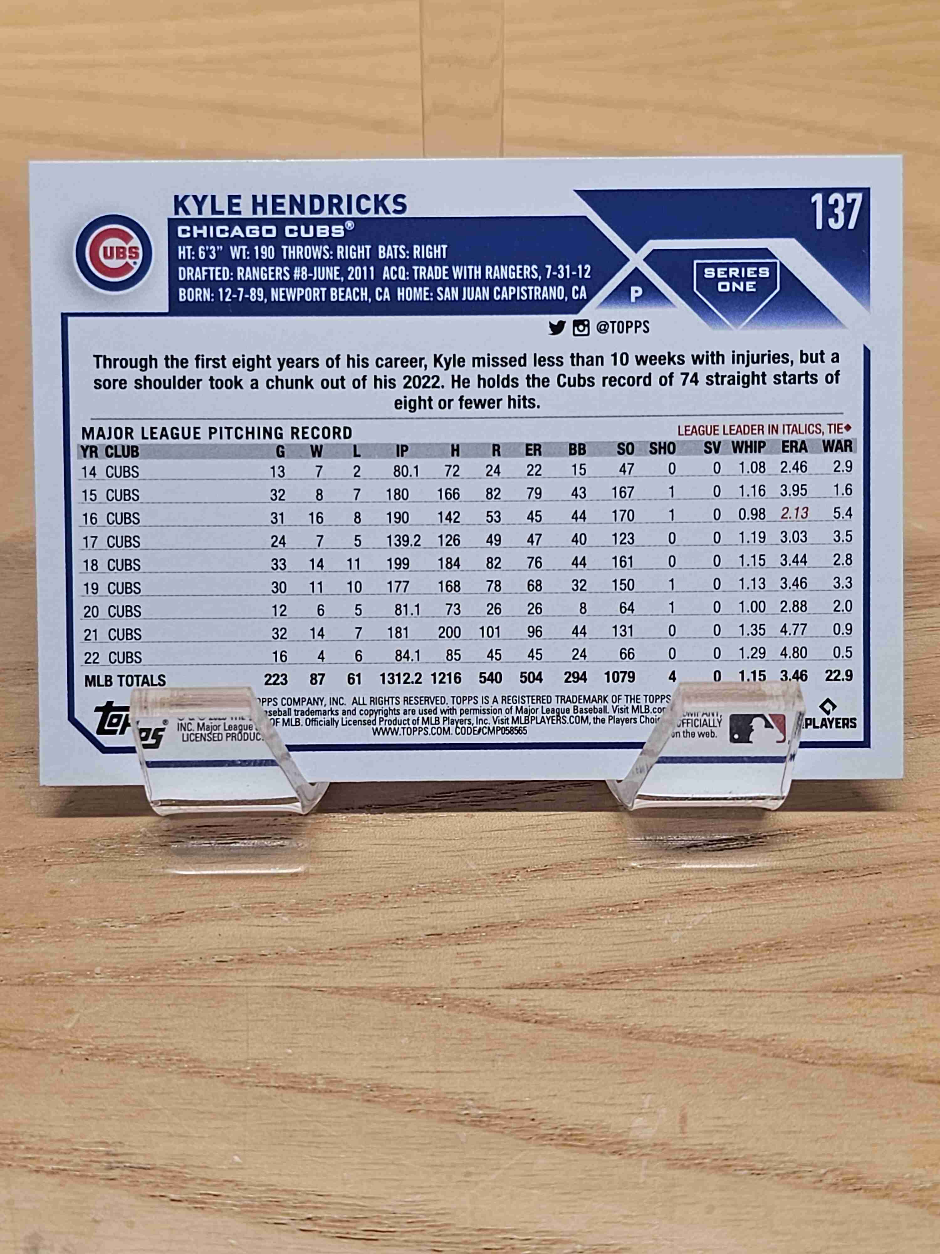 2023 Topps Series One Baseball Kyle Hendricks Chicago Cubs Card #137