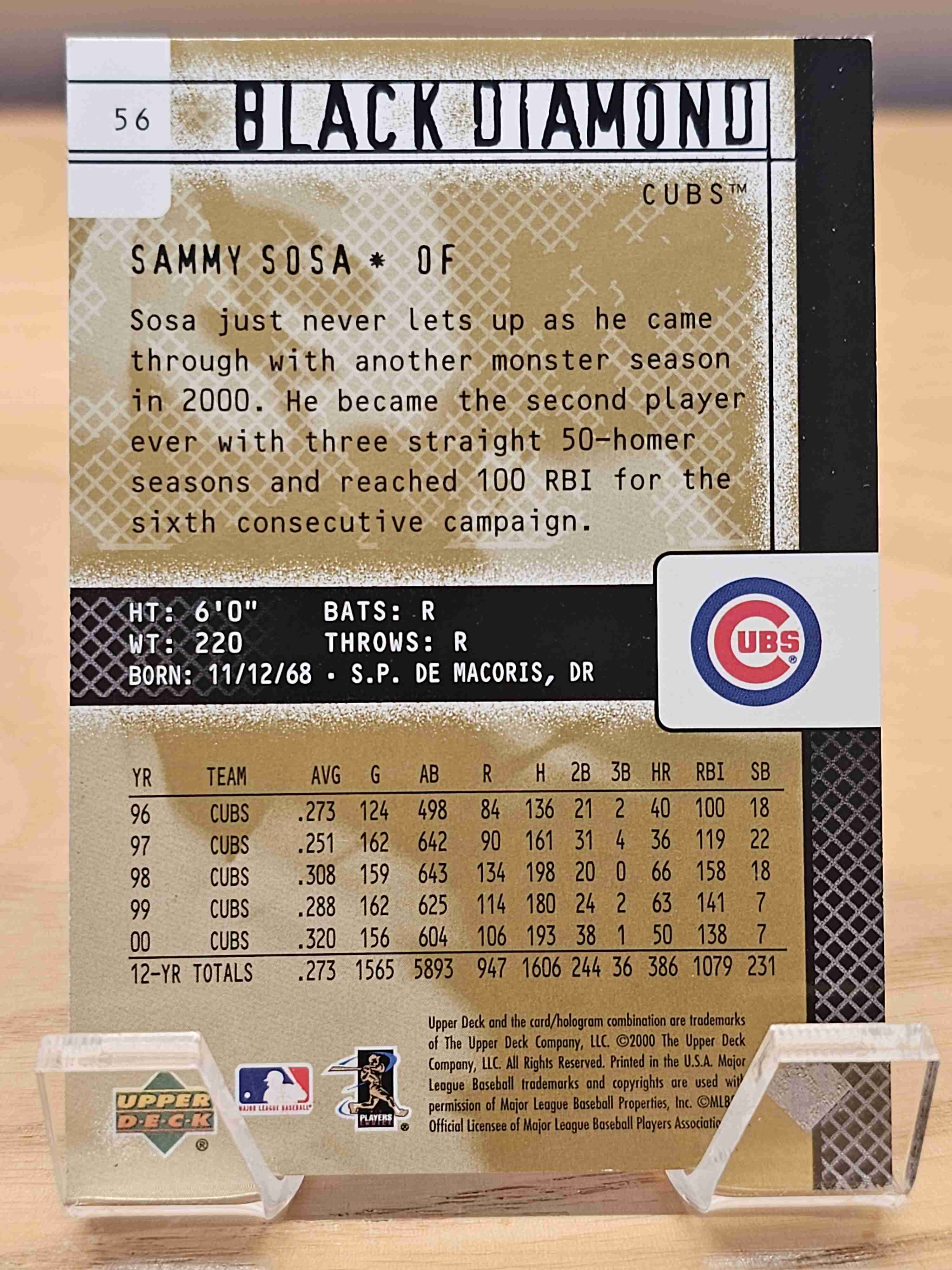 2000 Upper Deck Black Diamond Rookie Edition Baseball Sammy Sosa Chicago Cubs Card #56
