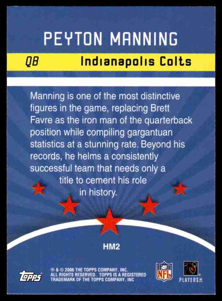 2006 Topps #HM2 Peyton Manning FOOTBALL Indianapolis Colts