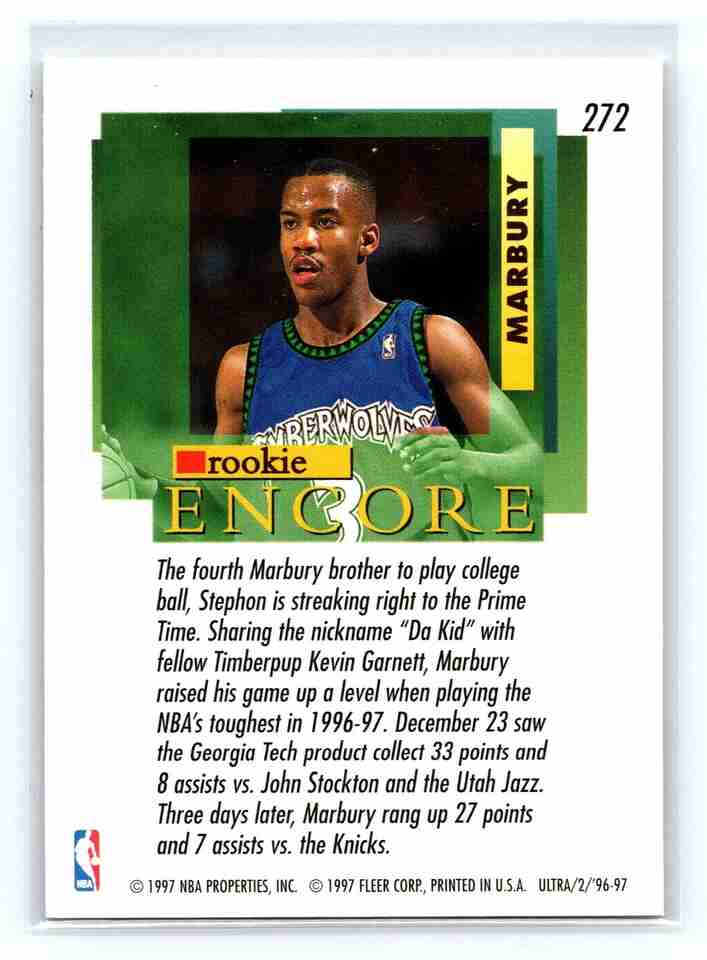 1996-97 Fleer Ultra Rookie #272 Stephon Marbury Minnesota Timberwolves