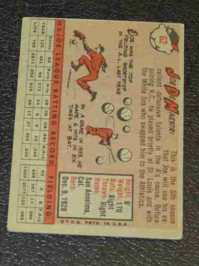 1958 Topps #62 Joe DeMaestri - VG/VG+ BV $12 - Low #