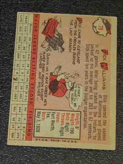 1958 Topps #79A Dick Williams - VG+/EX BV $15 - Low #