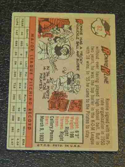 1958 Topps #82 Ronnie Kline - VG/VG+ BV $12 - Low #