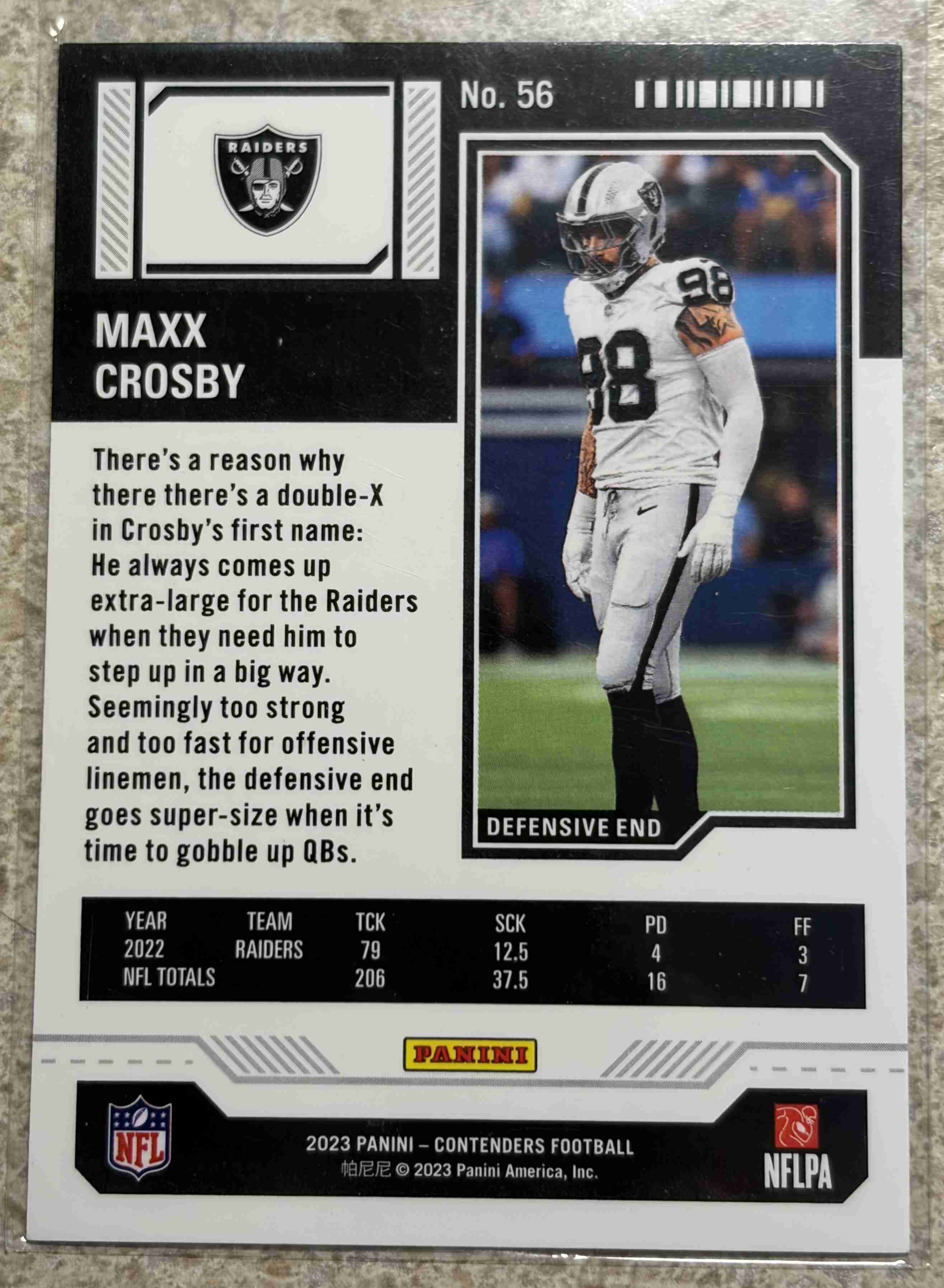 2023 Panini Contenders Maxx Crosby #56 Game Ticket NRMT Shipped in PWE