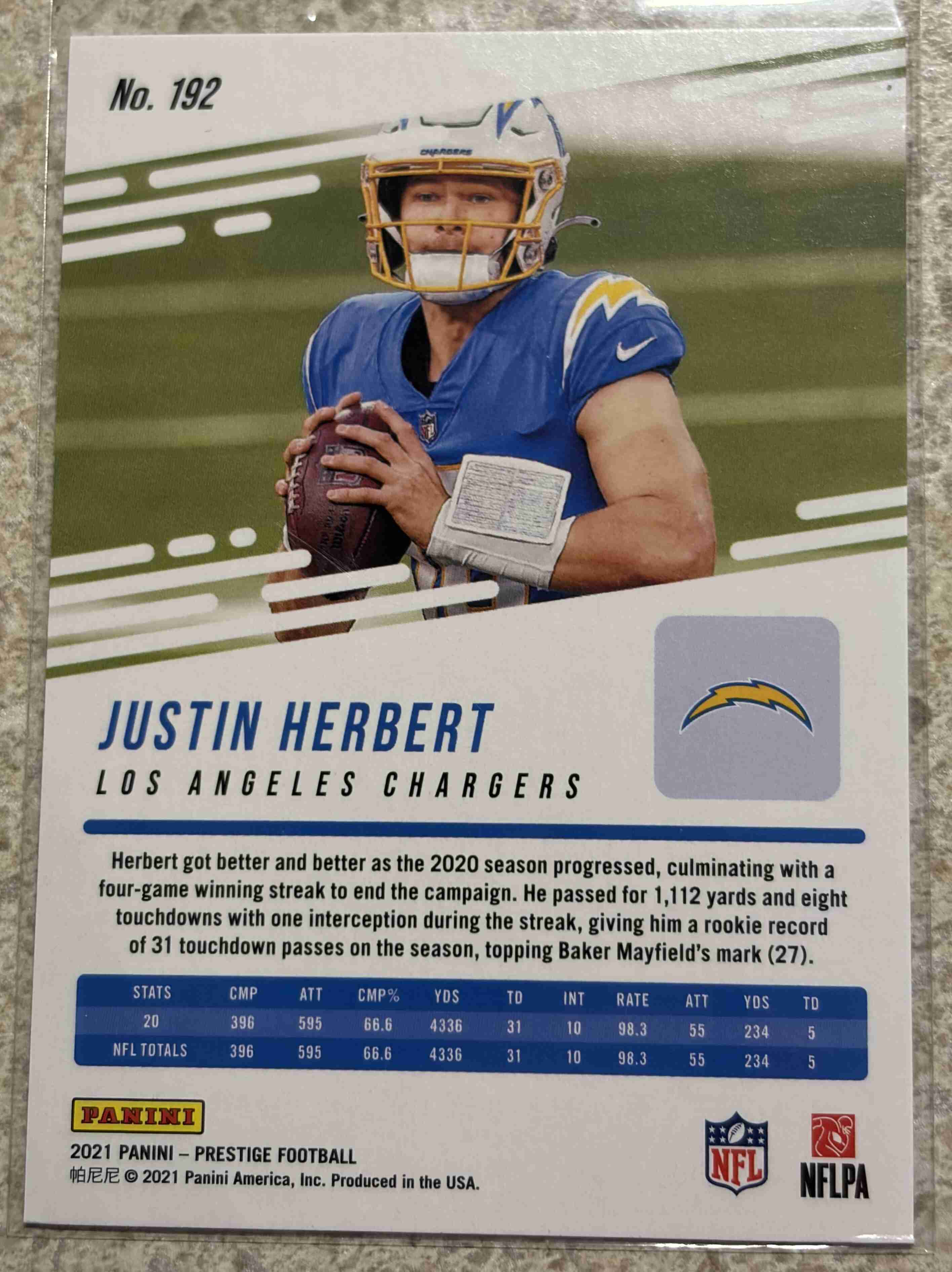 2021 Panini Prestige Football Xtra Points DIAMOND Justin Herbert #192 Shipped in PWE