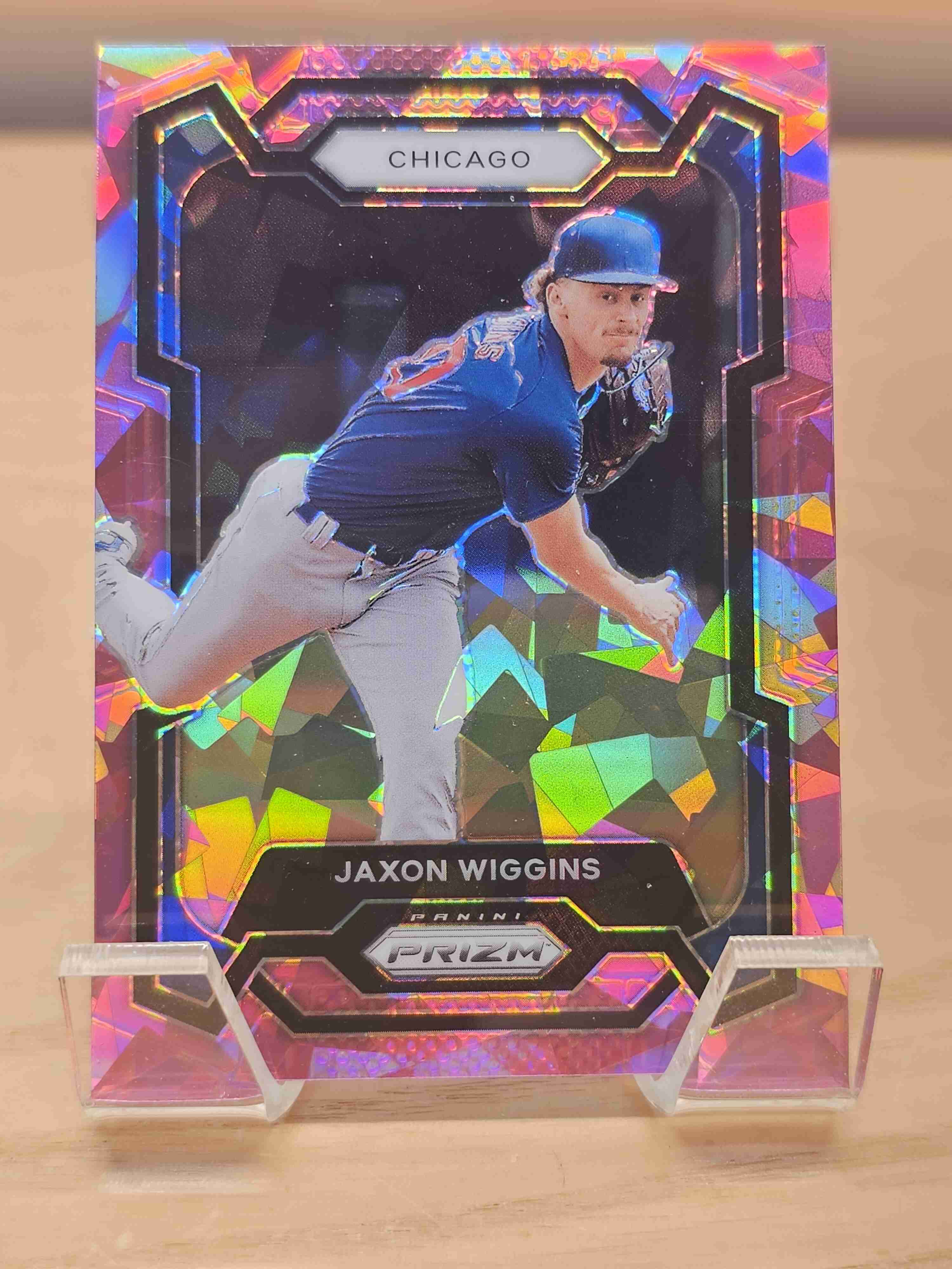 2024 Panini Prizm Baseball Pink Cracked Ice Prizm Jaxon Wiggins Chicago Cubs Card #223