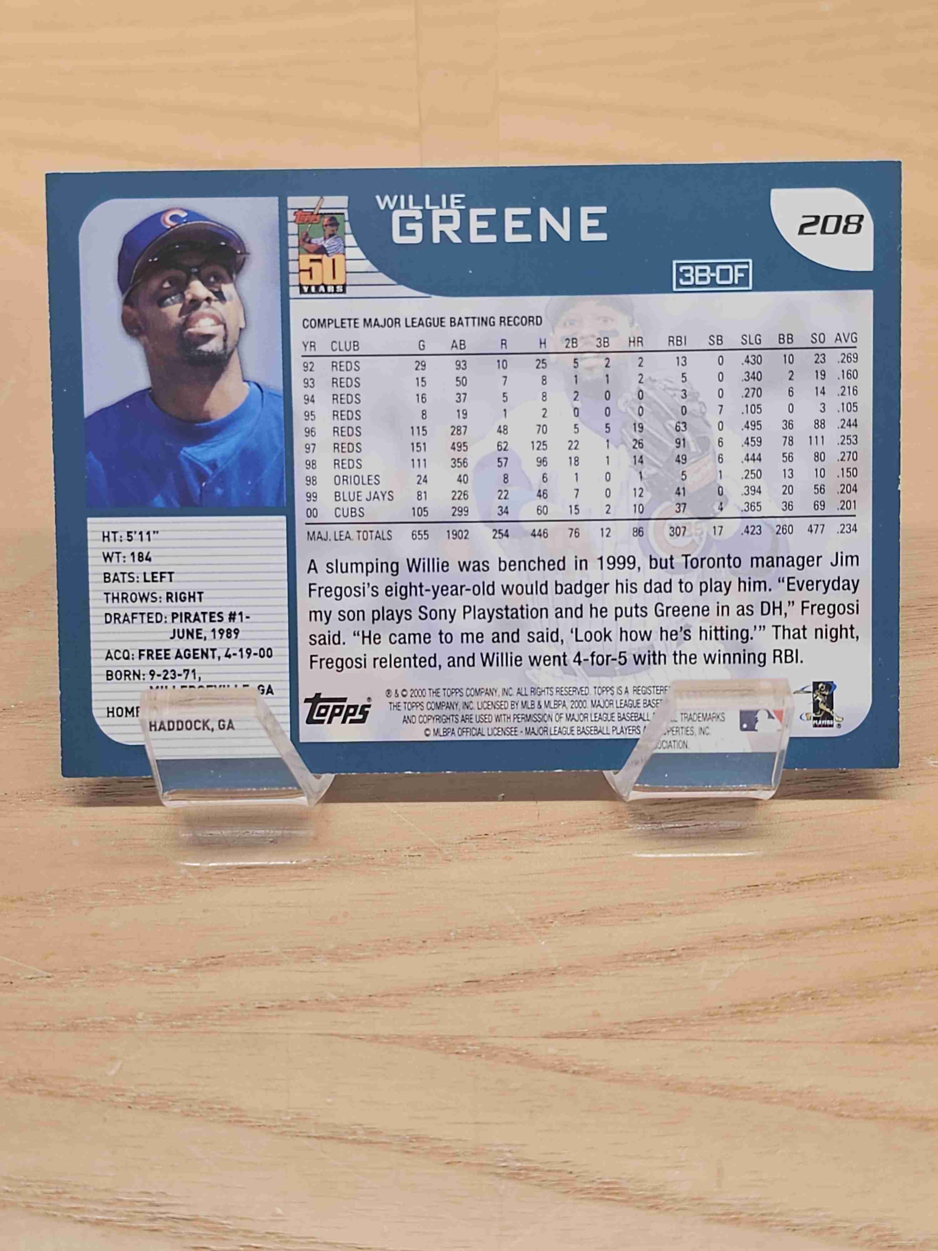 2000 Topps Baseball Willie Greene Chicago Cubs Card #208