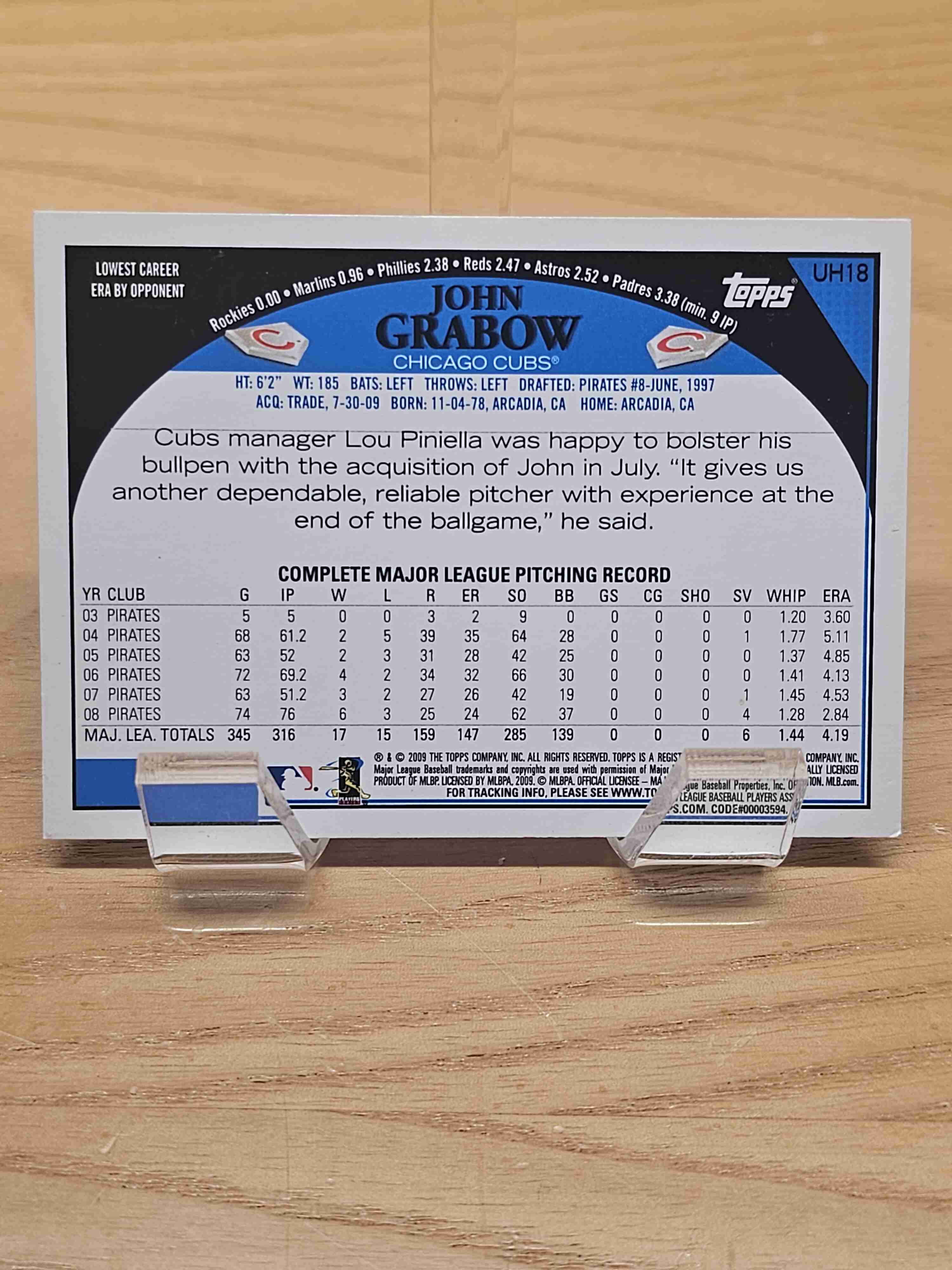 2009 Topps Baseball Updates & Highlights John Grabow Chicago Cubs Card #UH18