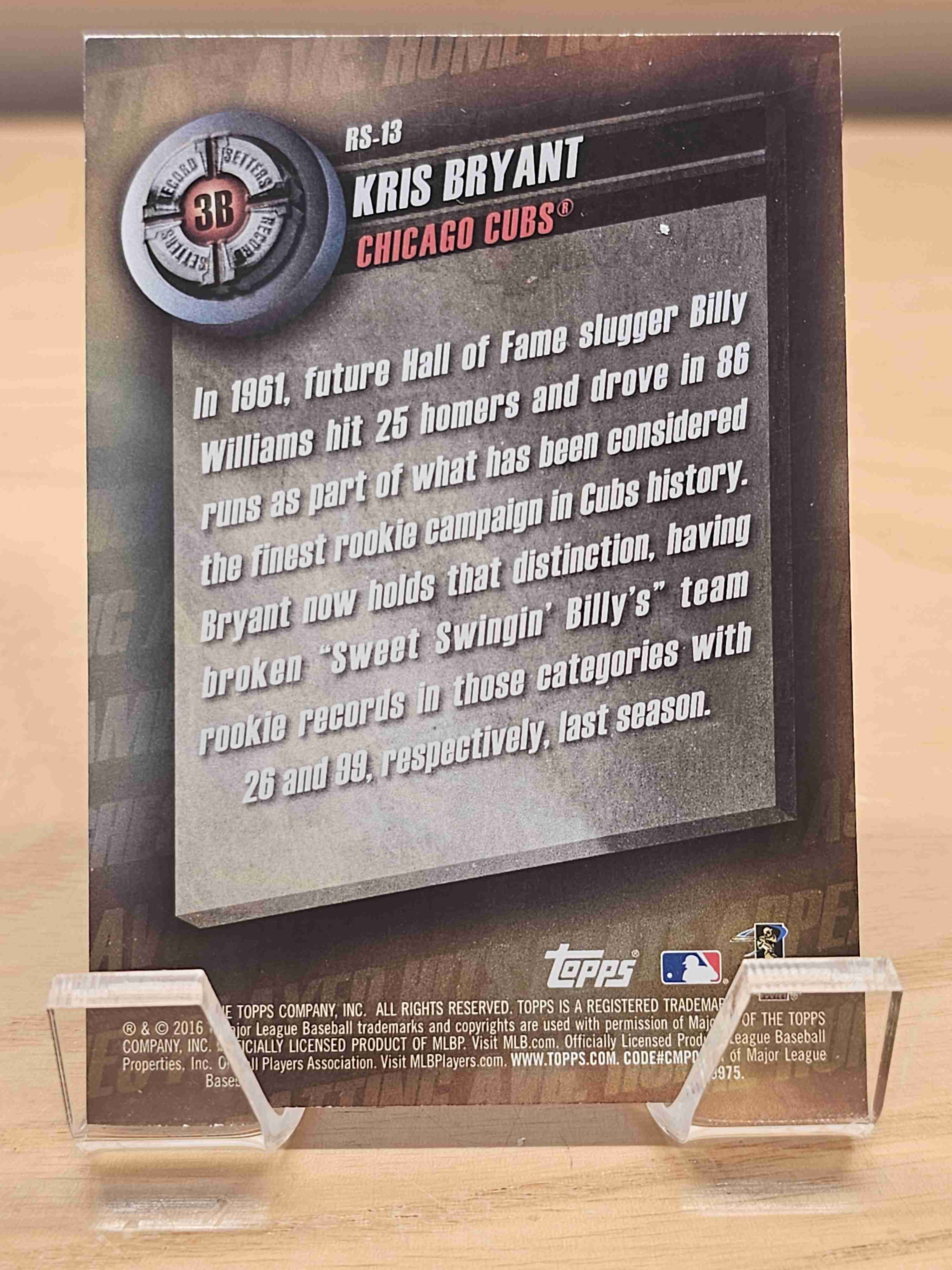 2016 Topps Baseball Record Setters Kris Bryant Chicago Cubs Card #RS-13