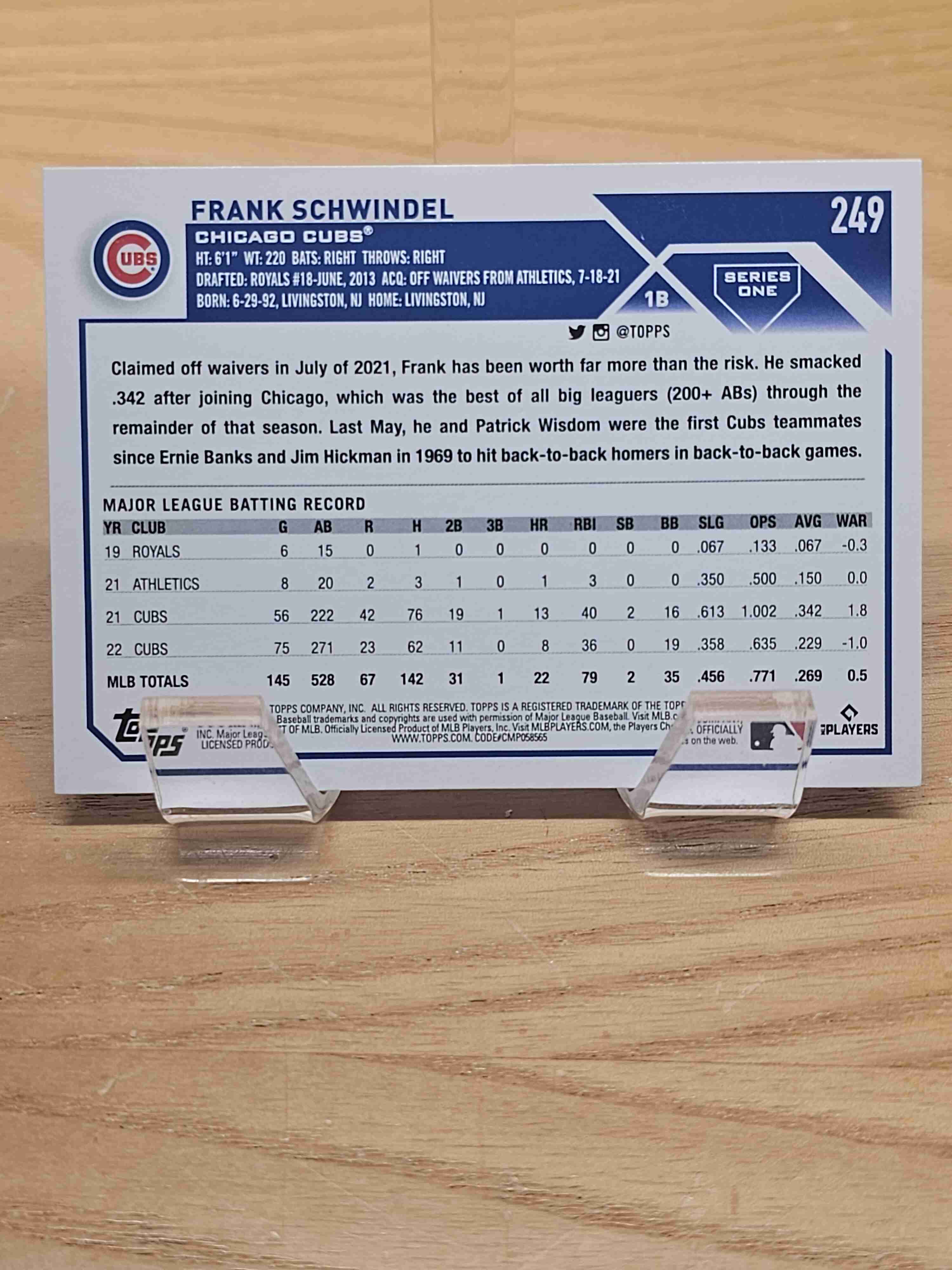 2023 Topps Series One Frank Schwindel Cubs #249