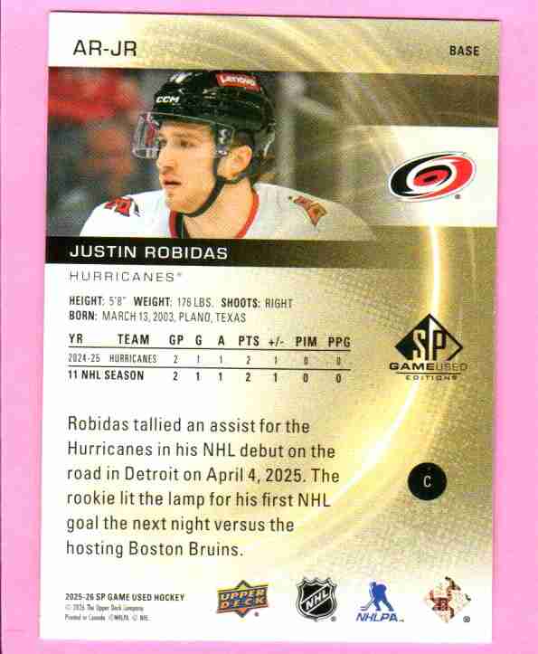 Justin Robidas #AR-JR 2025 SP Game Used Authentic Rookies