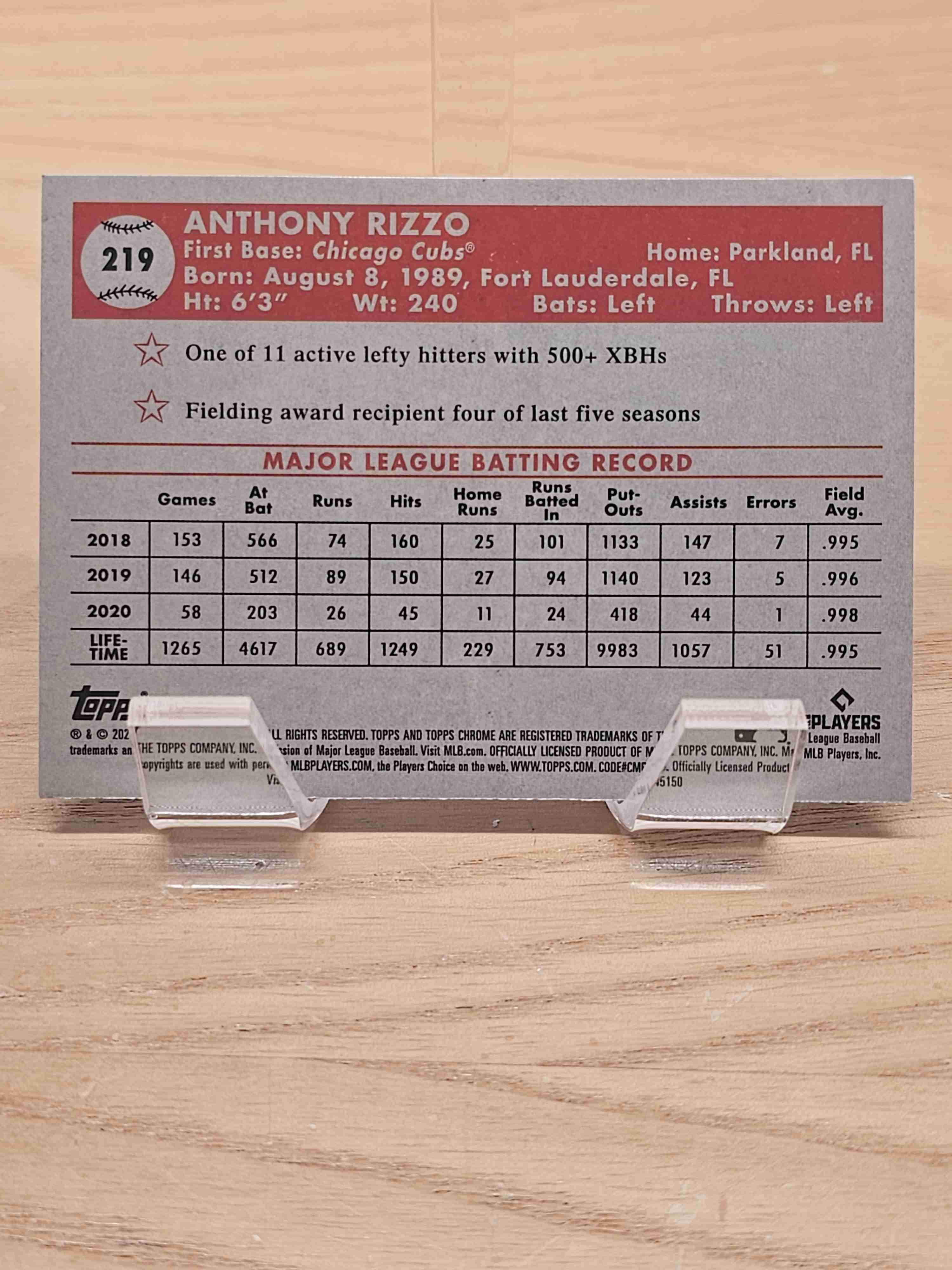 2021 Topps Chrome Platinum Anniversary Prism Refractor Anthony Rizzo Chicago Cubs Card #219