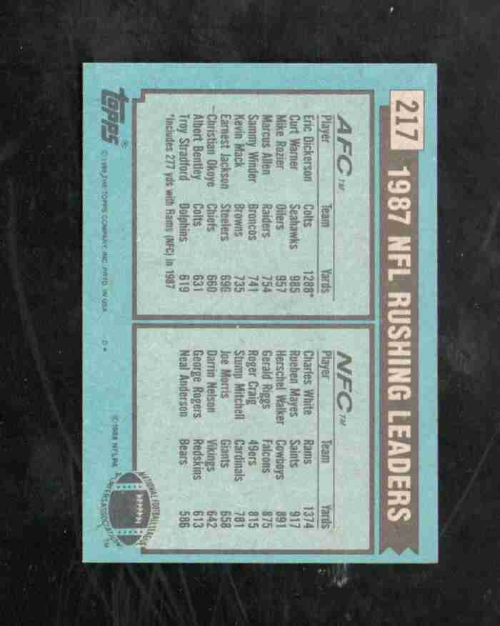 1988 Topps # 217 1987 Rushing Leaders Dickerson/White NM/