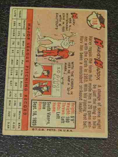 1958 Topps #118 Harvey Haddix - VG/VG+ BV $10