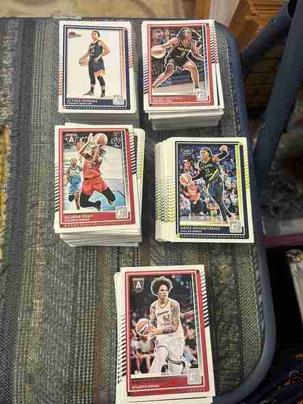 This auction is for a lot of 494 2025 Donruss WNBA base cards. These are mostly commons with some minor stars. There are NO Rated Rookies and No major stars (Clark, Reese, Aja, Plum etc.). There are doubles. Some cards have heavy duplication and some have only 1 or 2.