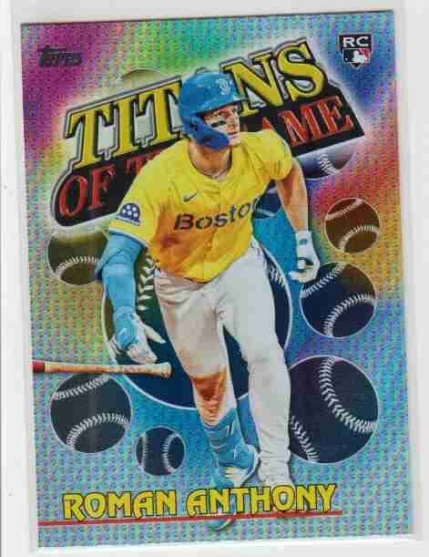 Please take a look at the photo for details on the card's condition. The card you are bidding on is the card pictured. This auction is for a 2026 Topps Series 1 Titans of the Game insert of #TOG-9 Roman Anthony RC. If you have any questions or require more detailed images, please don't hesitate to ask. Note: The shipping price shown is for PWE. The card will ship with a tracking number if the final auction price exceeds a certain dollar amount (or when combined with some other completed auctions). Otherwise, the card will be shipped PWE. Thank you!