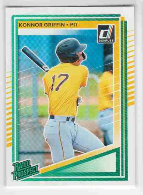 Please take a look at the photo for details on the card's condition. The card you are bidding on is the card pictured. This auction is for a 2025 Donruss Rated Prospect #123 Konnor Griffin. If you have any questions or require more detailed images, please don't hesitate to ask. Note: The shipping price shown is for PWE. The card will ship with a tracking number if the final auction price exceeds a certain dollar amount (or when combined with some other completed auctions). Otherwise, the card will be shipped PWE. Thank you!