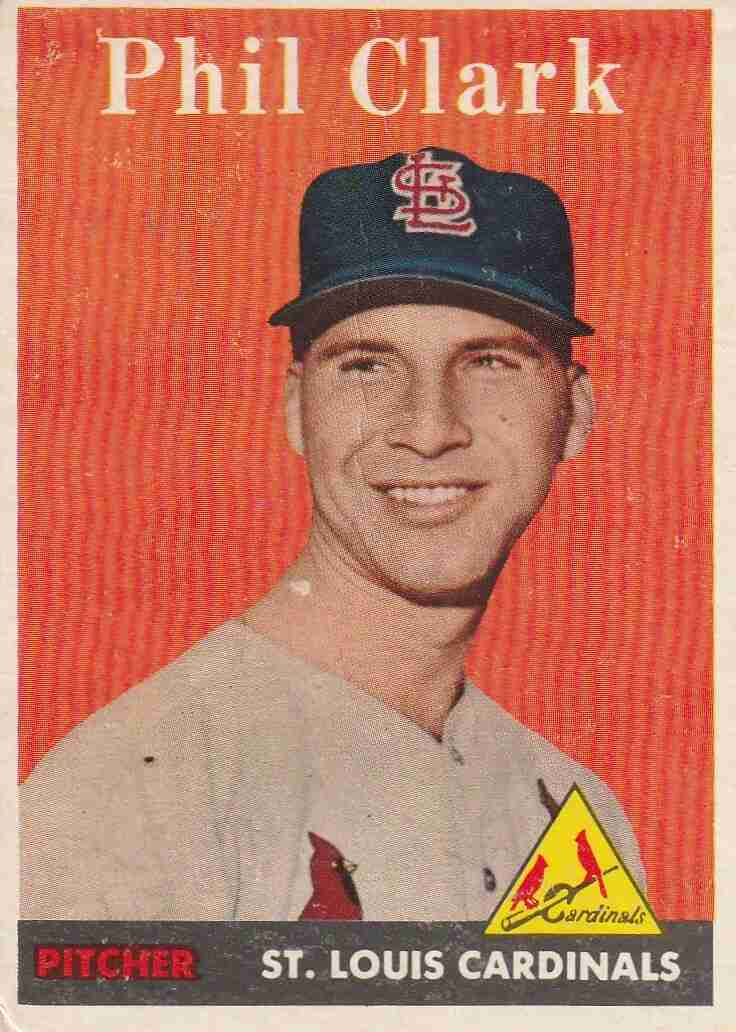 #156 Dick Hyde Washington Senators (VG+/EX) crease upper left #423 Phil Clark Cardinals (VG+/EX) sqiggle crease top middle thru face//spot blemish **Cards are intact with fully legible backs