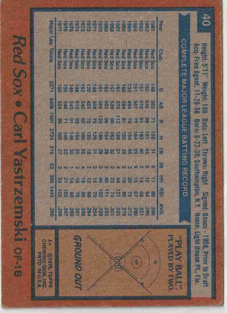 2-Topps Carl Yastrzemski '78 #40 '79 #320
