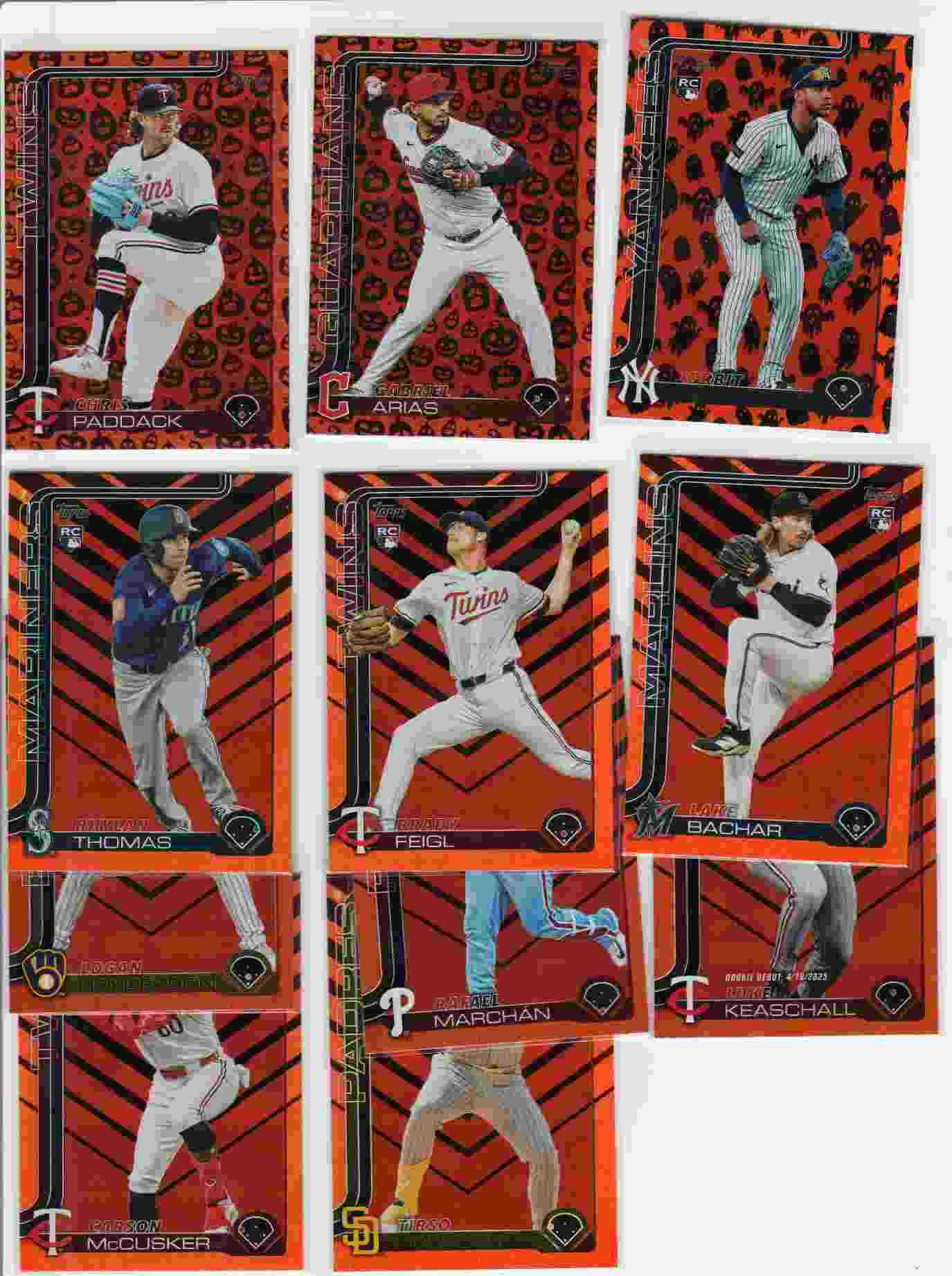 Please take a look at the photos for details on the cards' condition. The cards you are bidding on are the cards pictured. This auction is for 11 2025 Topps Update Halloween (with Ghost & Pumpkins) Parallels. View the image for a complete listing. You can use your judgment on the grade of the cards. If you have any questions or require more detailed photos, please don't hesitate to ask. Note: The shipping price shown is for PWE. The card will ship with a tracking number if the final auction price exceeds a certain dollar amount (or if it is combined with the appropriate number of other completed auctions). Otherwise, the card will be shipped PWE. Thank you!