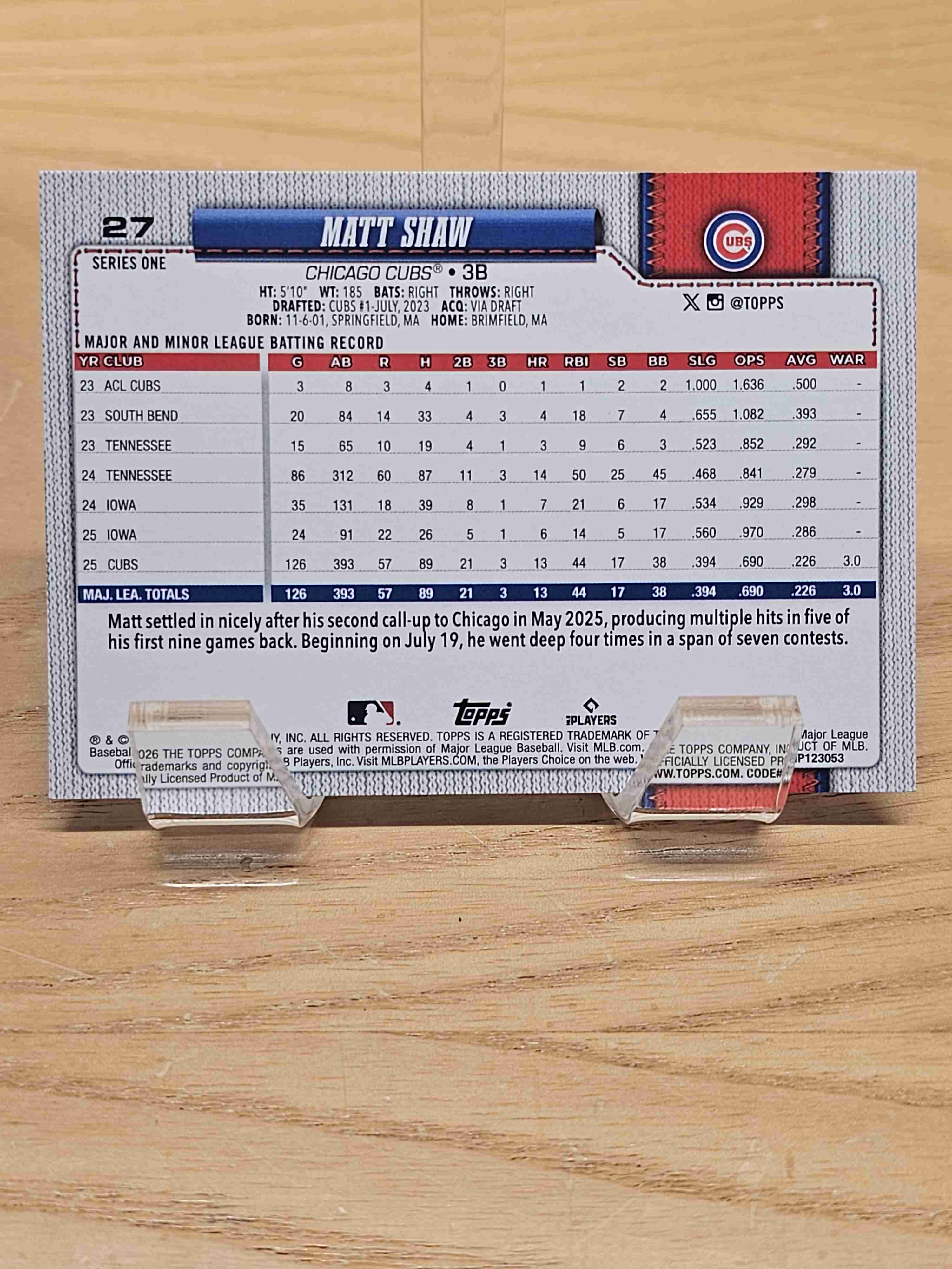2026 Topps Series One Baseball Rookie Cup Matt Shaw Chicago Cubs Card #27