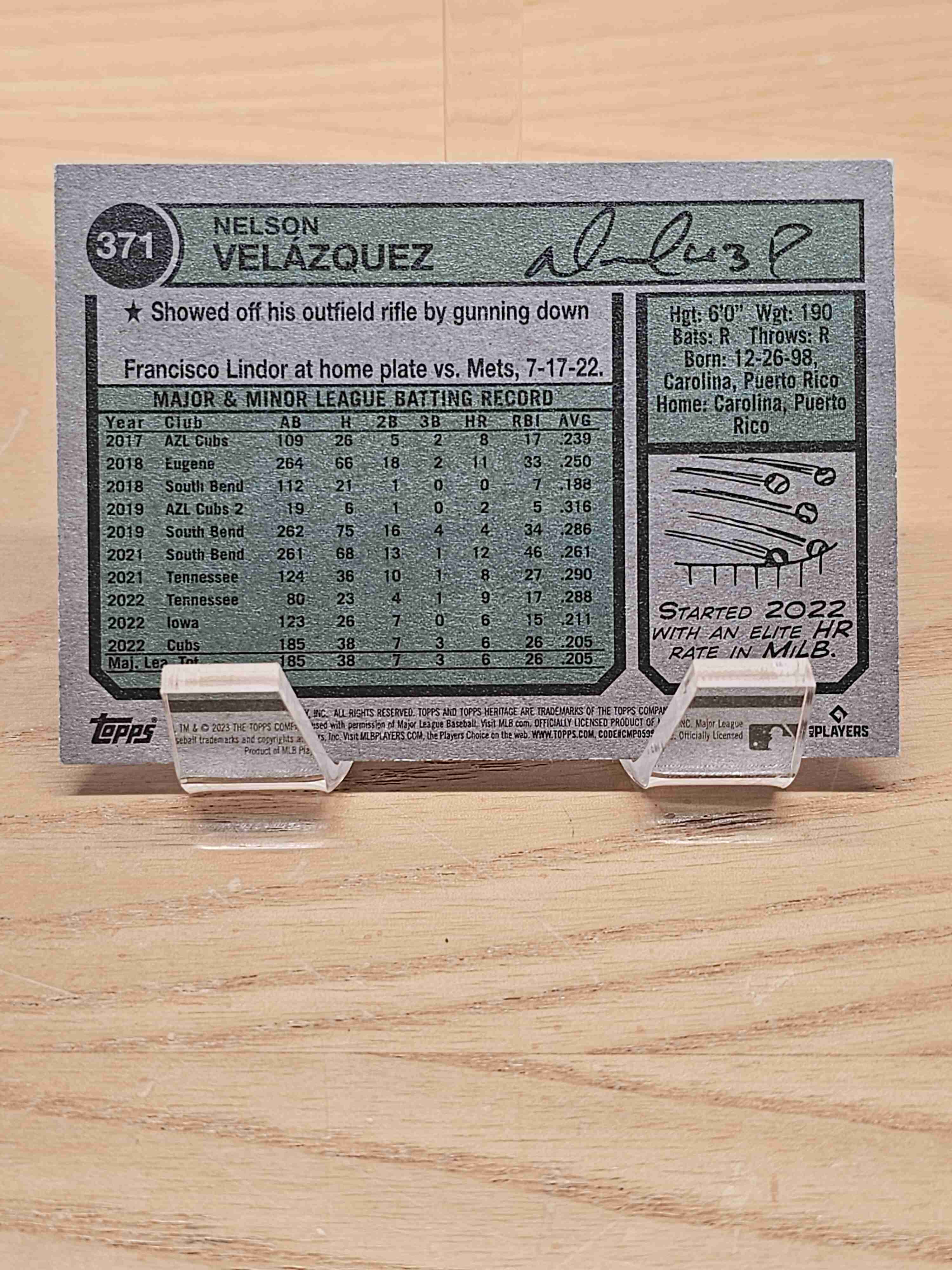 2023 Topps Heritage Baseball Rookie RC Nelson Velazquez Chicago Cubs Card #371