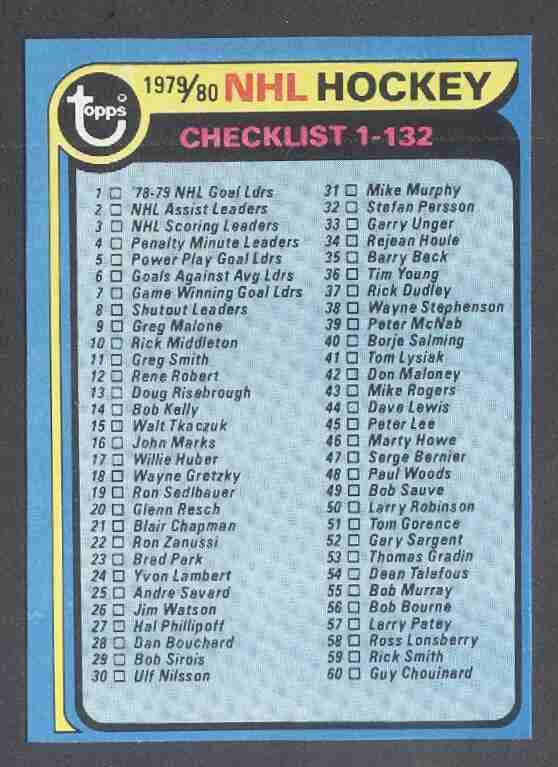 1979-80 TOPPS CHECKLIST (GRETZKY ROOKIE) #131 - HIGH GRADE